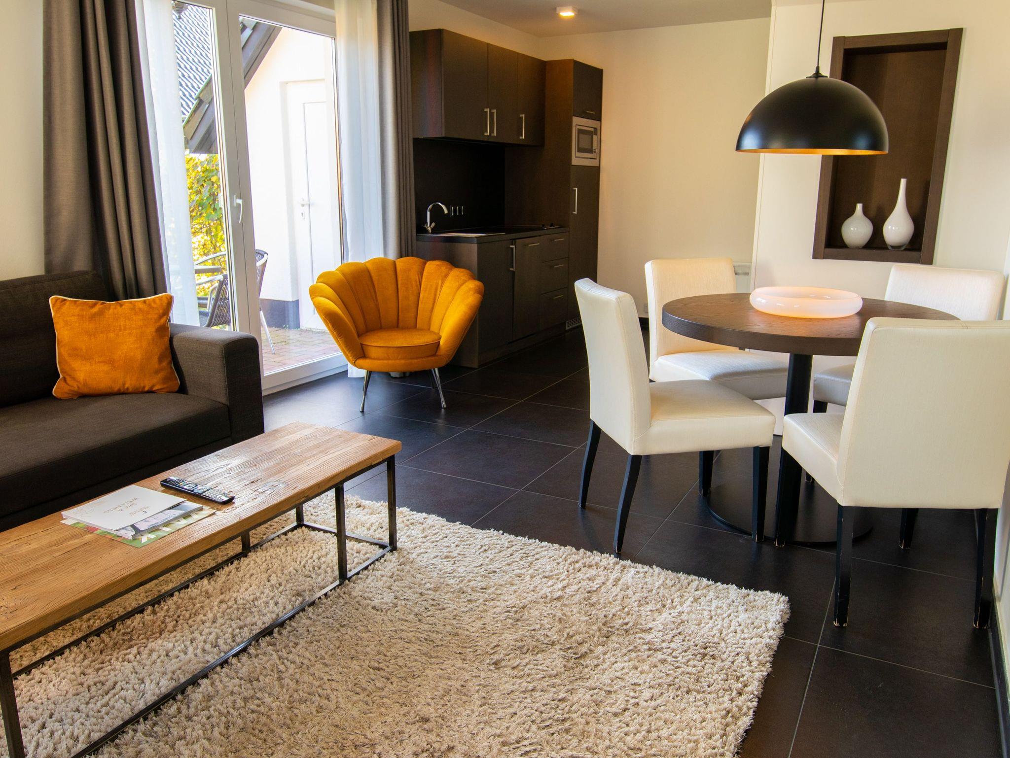 Mit ihren 40 m² bieten die Ferienwohnungen im Van der Valk Resort Linstow viel Raum für erholsame Tage. Auf zwei Etagen verteilt, findest du hier alles, was du für einen komfortablen Urlaub brauchst. Im Erdgeschoss befindet sich das offene Wohnzimmer mit einem Schlafsofa, auf dem du nach einem langen Tag entspannen kannst. Ein TV sorgt für Unterhaltung, während die praktische Pantry-Küche mit 2-Platten-Herd, Mikrowelle, Kühlschrank, Spülmaschine und Kaffeemaschine alles bereithält, um dich kulinarisch zu verwöhnen. Egal, ob du dir nur einen Kaffee machst oder ein schnelles Frühstück zauberst ? du hast alles griffbereit. Das Obergeschoss bietet dir ein gemütliches Schlafzimmer mit einem Doppelbett (180x200), in dem du dich erholen kannst. Hier findest du auch das moderne Badezimmer mit Dusche ? alles für deinen Komfort gestaltet. Die Ferienwohnung verfügt über eine eigene Terrasse, die sich perfekt für entspannte Stunden im Freien eignet. Du kannst auch einen Grill ausleihen und den Tag bei einem gemütlichen Barbecue ausklingen lassen. Haustiere sind hier ebenfalls willkommen, sodass du deine Auszeit in Linstow ganz unbeschwert genießen kannst.