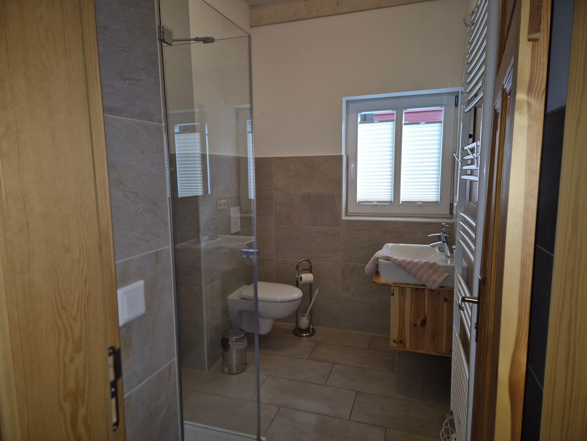 sowie ein Badezimmer mit Dusche.