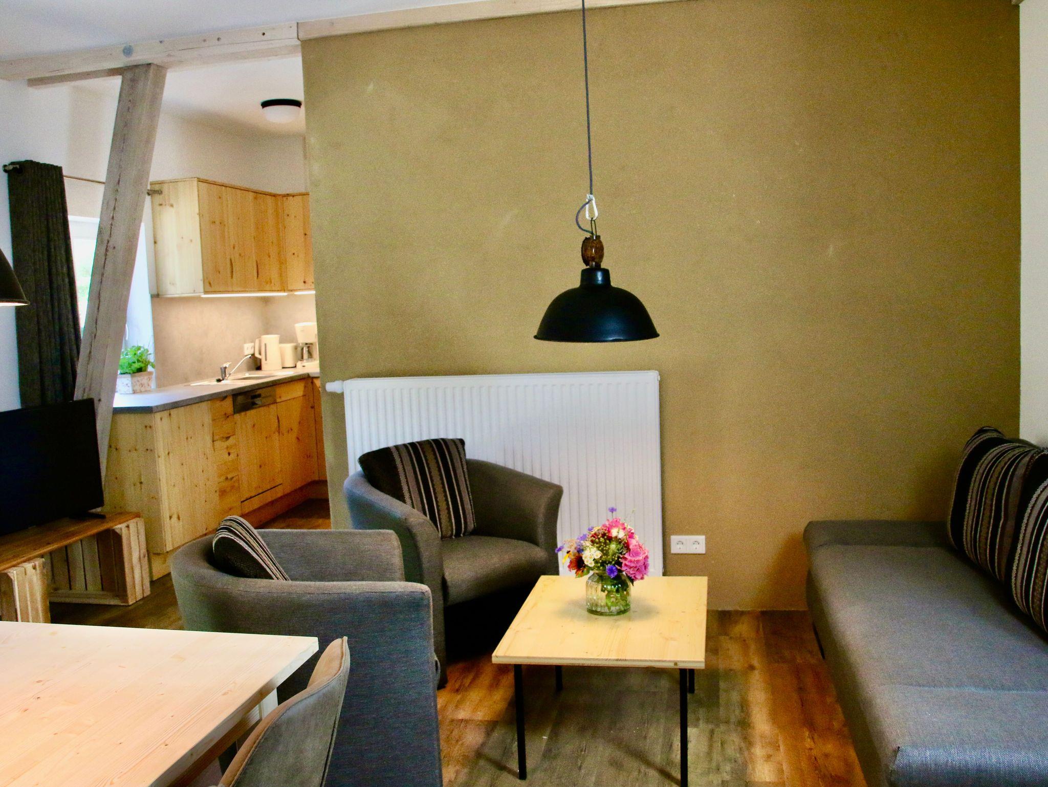 Unsere gemütliche Nichtraucher-Ferienwohnung „Lindwerder“ im Erdgeschoss der Ferienscheune bietet auf ca. 42 m² alles, was Sie für einen erholsamen Urlaub brauchen.