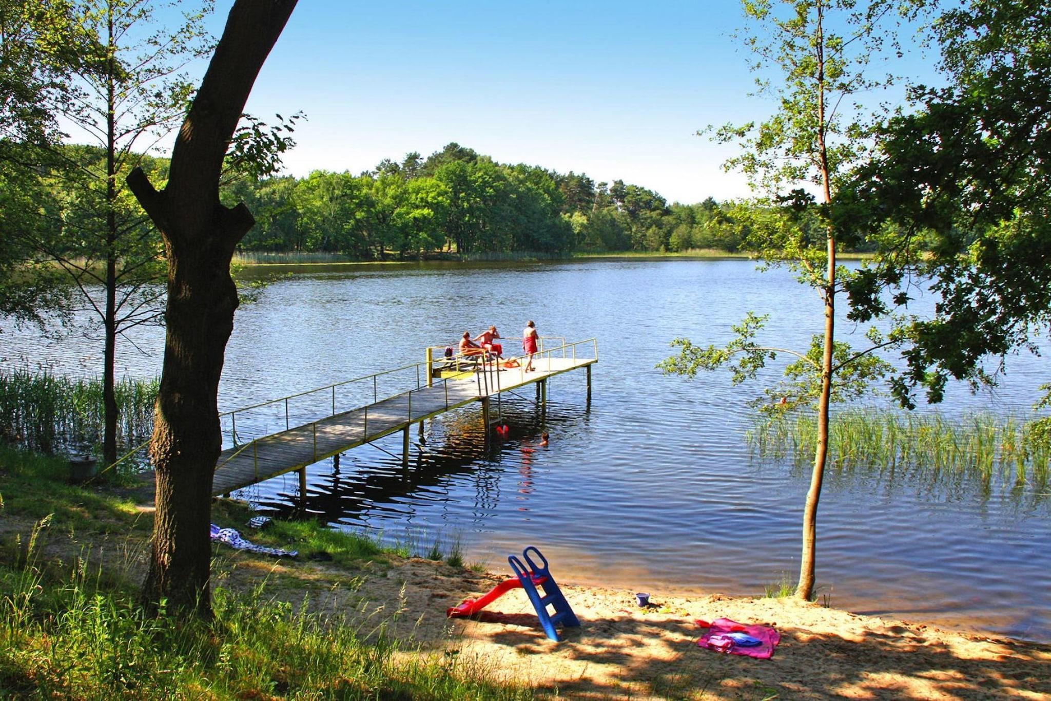 En hyggelig, lille ferielandsby med en rustik restaurant, beliggende på en fantastisk bjergskråning mellem to søer med udsigt over vandet. Et dejligt svømmeområde giver forfriskning på varme sommerdage. Lystfiskere benytter sig af sødistriktets fremragende fiskemuligheder. Resortets 36.000 kvadratmeter store skovbevoksede grund tilbyder masser af plads til alle aldre til at boltre sig, lege og slappe af. Dobbrikow er det distrikt med flest søer i Nuthe-Urstromtal kommune, beliggende i hjertet af det navngivne naturreservat, hvis vandkvalitet regelmæssigt testes. Aktiviteter i nærheden: En gang om ugen i højsæsonen tilbydes der en hyggelig pizzaaften for børn. Beliggende direkte ved Fläming Wanderweg, et 150 km langt skiltet netværk af 12 rundløjper, er ferielandsbyen med sin egen sø ideel for naturelskere, vandrere, stavgængere og lystfiskere. Cyklister, skøjteløbere og cyklister finder et "Mekka for rulleskøjter og hjul" i den sydlige del af Teltow-Fläming-distriktet: Fläming Skate. Højdepunkt: Kun et stenkast fra dit feriested er der en direkte busforbindelse til Berlin! Benyt lejligheden til at opleve hovedstadens seværdigheder og fantastiske shoppingmuligheder.