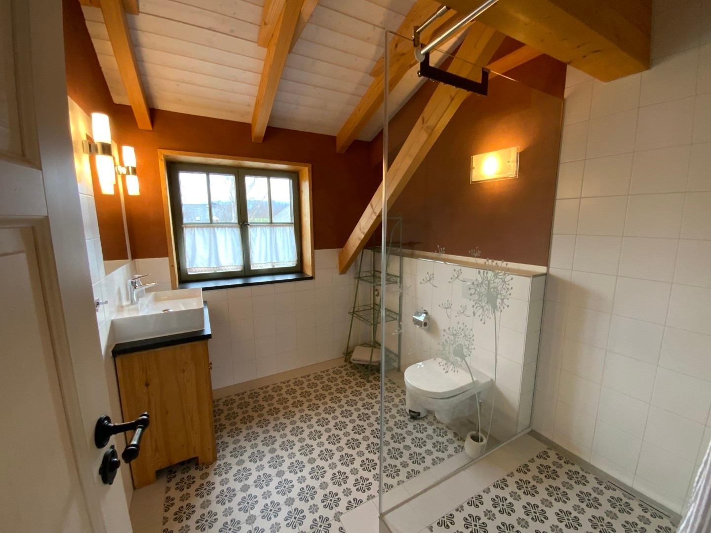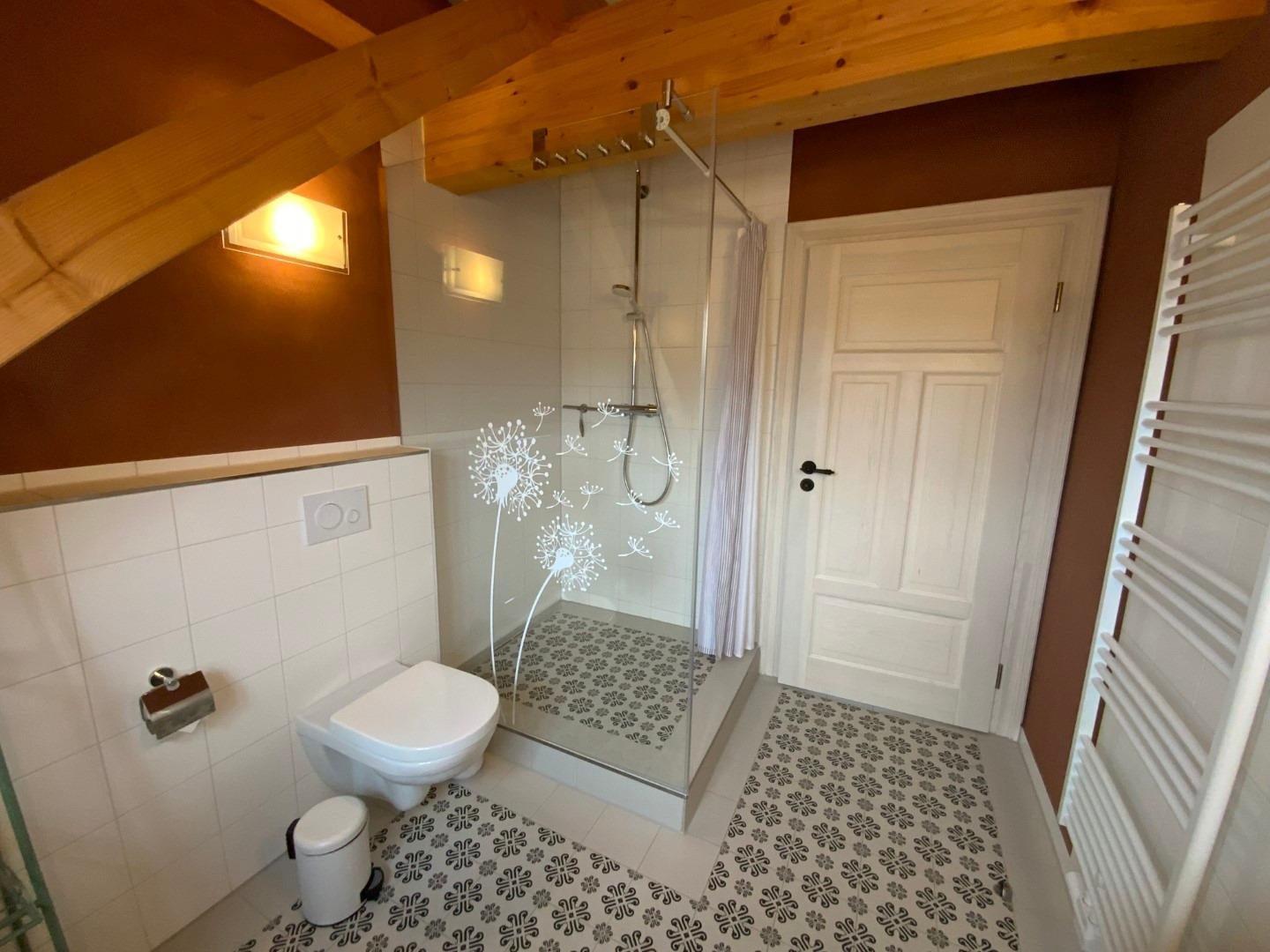 Die Kornkammer befindet sich im Dachgeschoß und bietet Platz für 6 Personen. Hier steht Ihnen eine große Wohnküche mit Essbereich zur Verfügung. Die Küche ist mit Herd, Geschirrspüler, Kühlschrank, Kaffeemaschine, Wasserkocher, Toaster und vielem mehr voll ausgestattet. Desweiteren gehören zur Wohnung ein Schlafzimmer mit Doppelbett, zwei Kinderzimmer mit je 2 Einzelbetten, ein Spielboden sowie ein Bad mit WC und Dusche. Durch die ökologische Bauweise mit Holz, Lehm und Naturdämmstoffen herrscht hier zu jeder Jahreszeit ein sehr angenehmes Wohnklima. Dort wo früher das Korn gelagert war, laden wir Sie ein von weiten Feldern und Wiesen zu träumen.