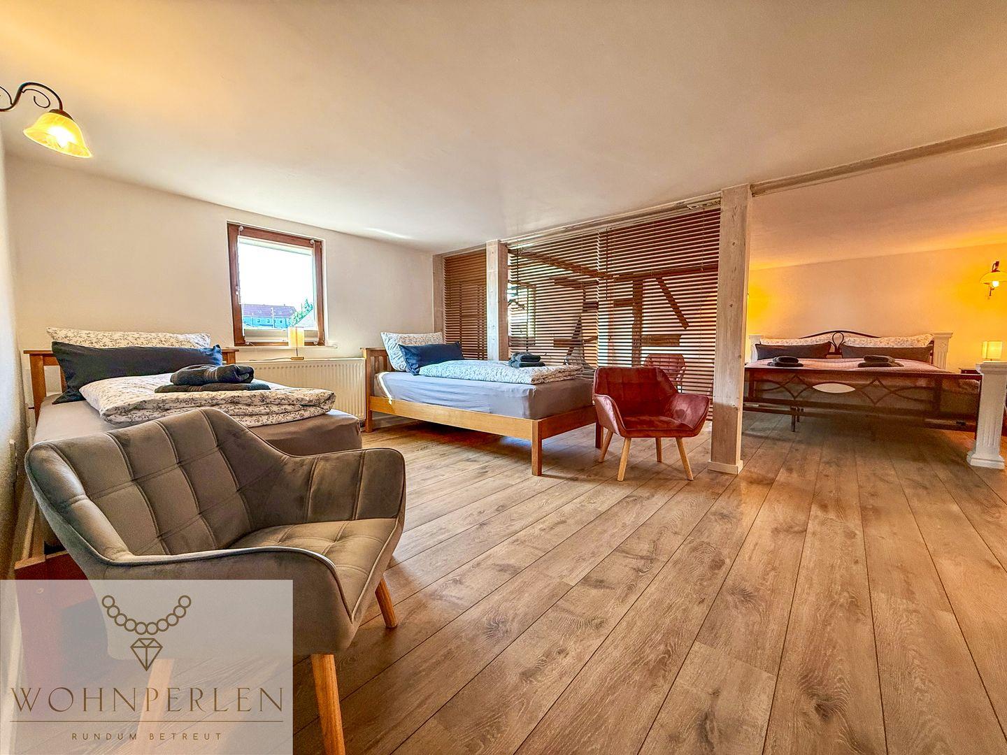 Entfliehen Sie dem Alltag in der Wohnperle Bauernhaus Meusegast, einem großzügigen Rückzugsort in Dohna, ideal für bis zu 6 Personen. Die stilvoll eingerichtete Unterkunft bietet 2 Schlafzimmer, ein Badezimmer sowie ein Gäste-WC und erstreckt sich über 120 m². Genießen Sie die offene Küche zur Wohnküche, die mit modernem Zubehör wie einem Herd, Kühlschrank und Geschirrspüler ausgestattet ist. Auf der überdachten Terrasse mit schönem Sichtschutz können Sie entspannte Stunden verbringen.
