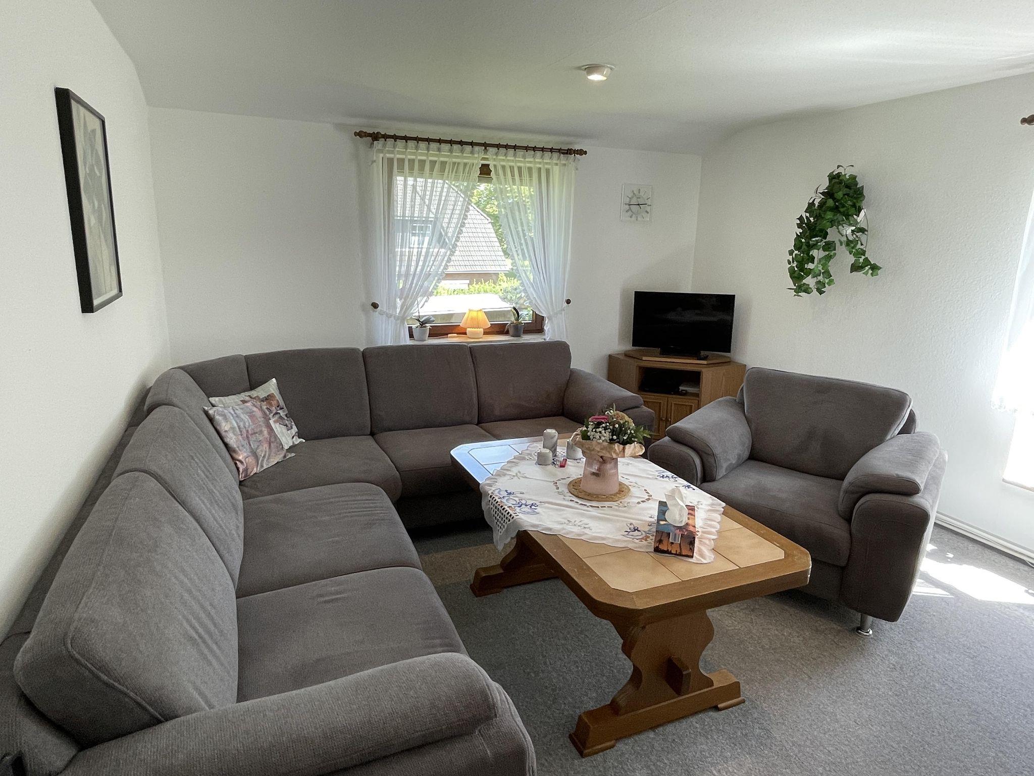 Das Wohnzimmer verfügt über eine große Sitzecke mit TV und Esstisch. Hier können Sie im gemütlichen Beisammensein den Abend ausklingen lassen.