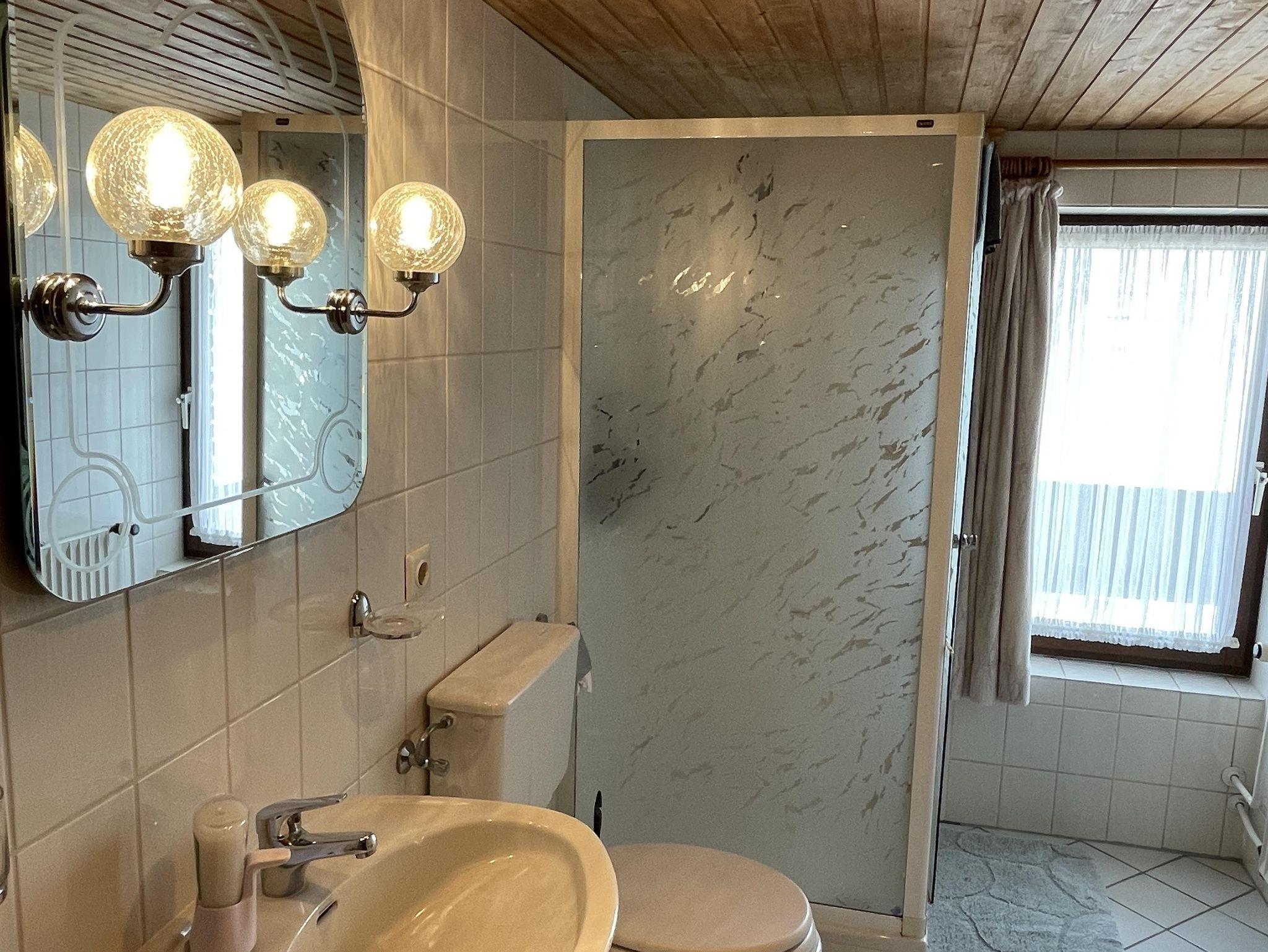 Auch das genräumige Badezimmer ist hell eingerichtet und mit einer Dusche ausgestattet.