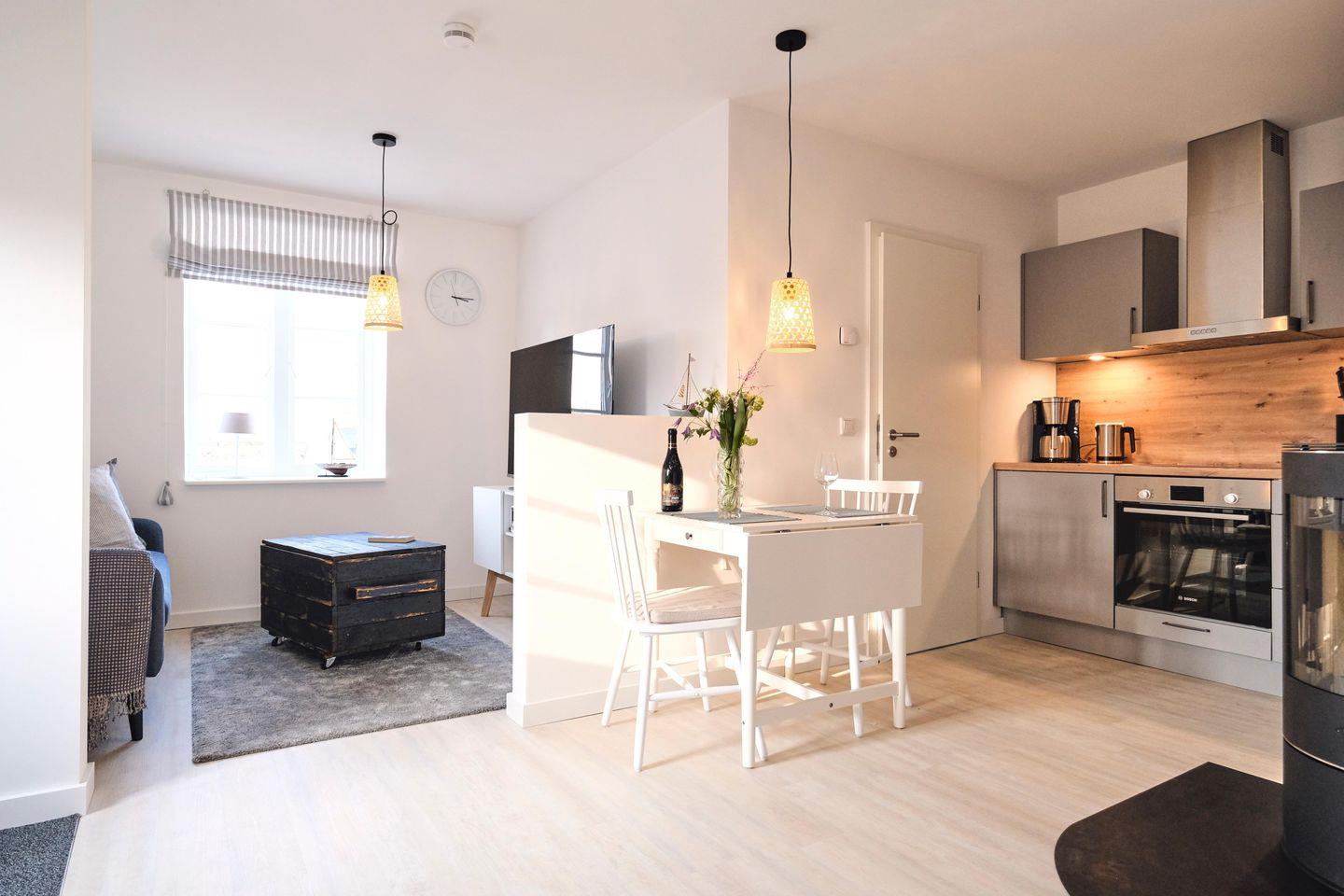 Das 2-Zimmer-Apartment ist mit einem Doppelbett ausgestattet, so dass es für 2 Personen geeignet ist. Nutzung von WLAN ist kostenfrei möglich. Die moderne und voll ausgestattete Einbauküche ist ideal für Selbstversorger. Das Apartment verfügt über ein neues Duschbad mit WC.