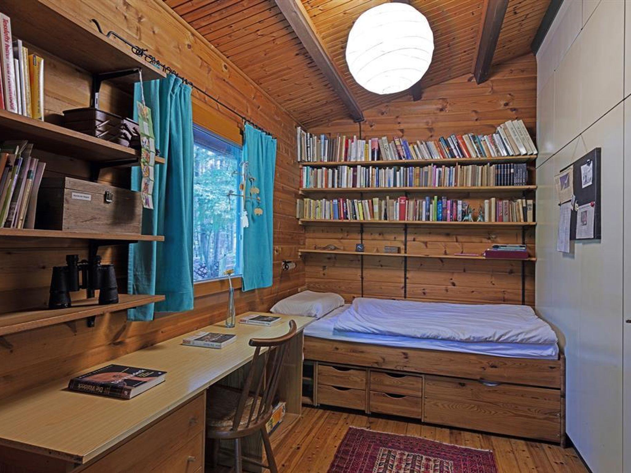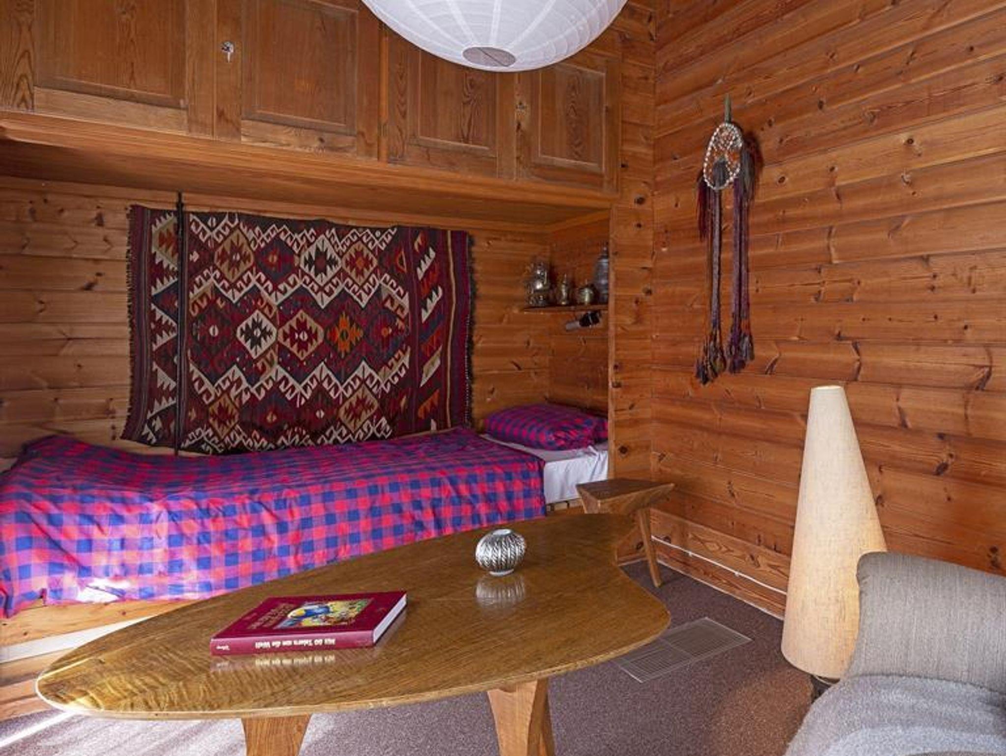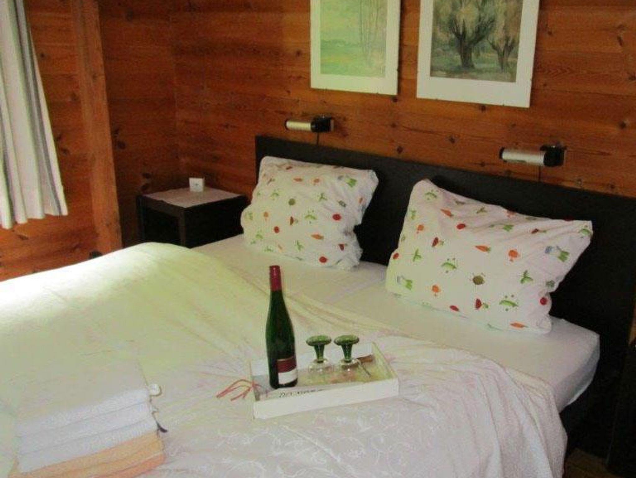 Holzblockhaus mit einem Doppel, 3 Einzelschlafzimmer, Wohnzimmer mit offenem Kamin, Küche, Sauna, TV, Telefon, Badezimmer mit Dusche, WC, Terrasse.