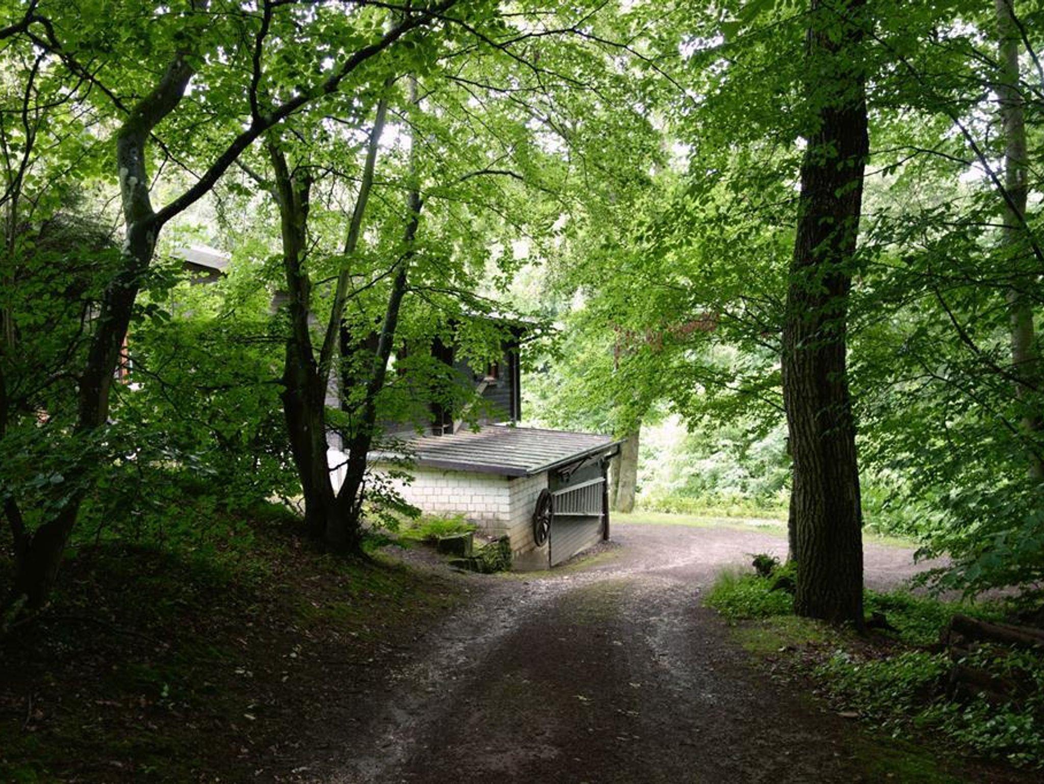 Alleinstehendes Holzblockhaus in Südhanglage, im Wald in der Nähe der Burg Waldeck und des Baybachtals;