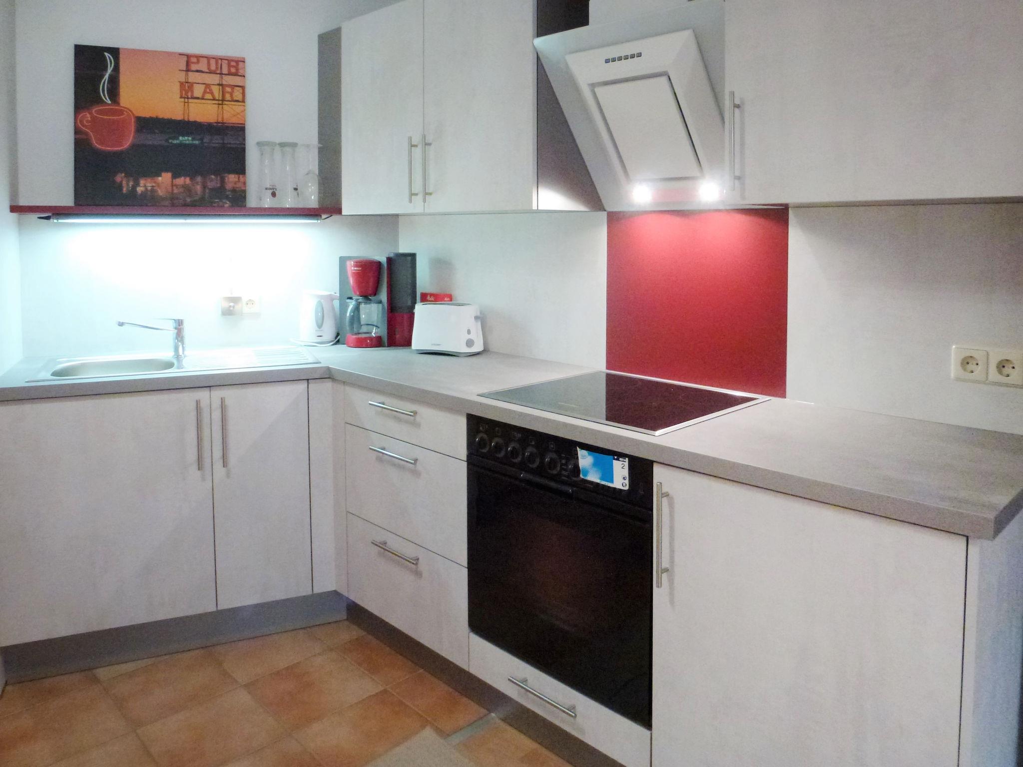 1-room granny flat 45 m2, on the lower ground floor. Bright, cosy furnishings: living/sleeping room with 1 bed (100 cm, length 200 cm), 1 double bed (1 x 140 cm, length 200 cm), dining table and cable TV (flat screen), radio. Kitchenette (oven, 4 ceramic glass hob hotplates, electric coffee machine). Shower/WC. Small patio. Facilities: iron, hair dryer. Internet (WiFi, free). Please note: non-smokers only. Private entrance.