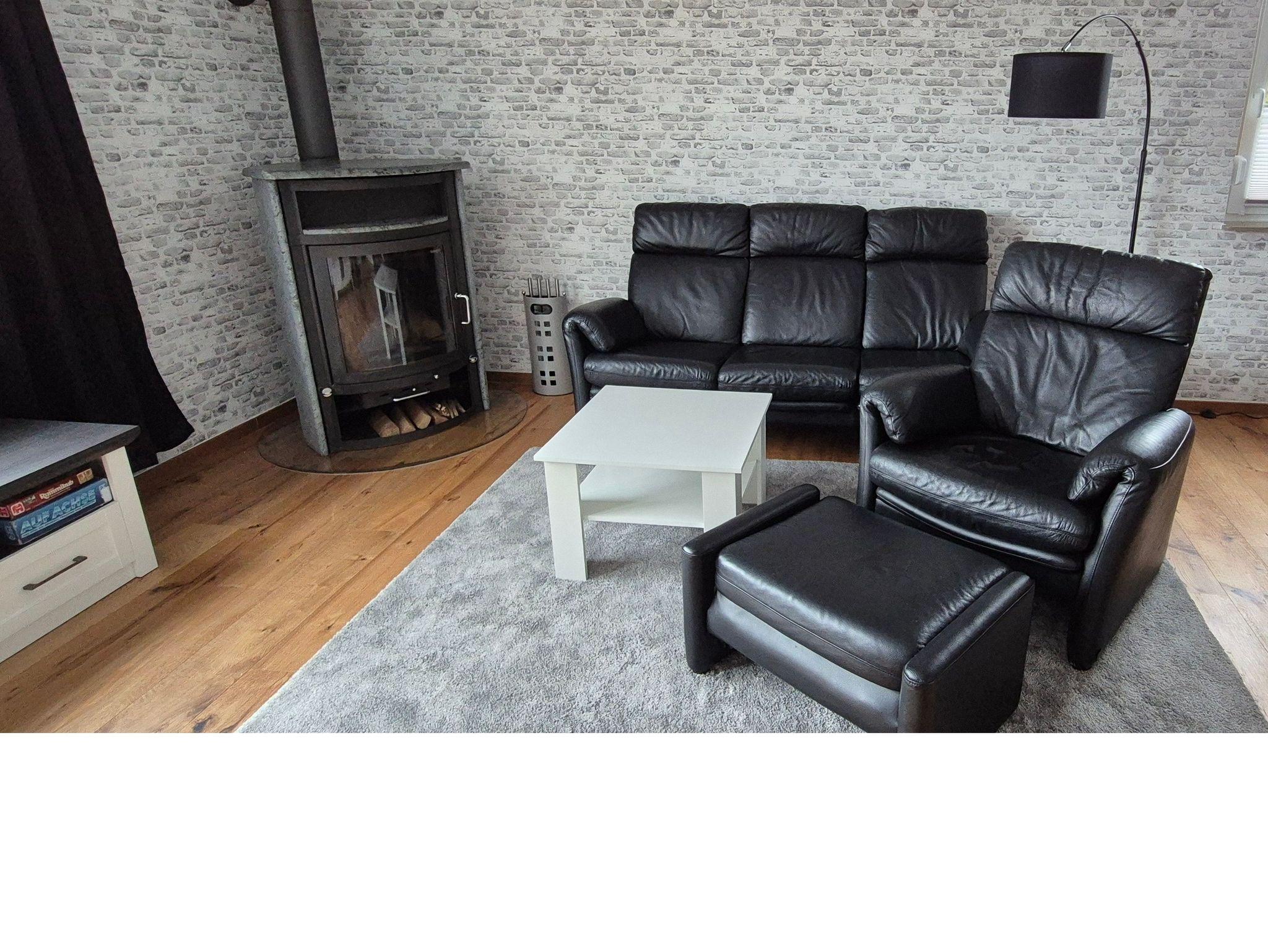 Wohn- Esszimmer mit gemütlicher Sitzecke vor dem Kamin /Ofen, Essplatz, Stereoanlage, Sat-Flachbild-Farbfernseher und Blu-Ray-Player, W-Lan. Für unsere Gäste halten wir einige Spiele, diverse DVD (auch für die Kleinen), Hörbücher und eine Reihe von Büchern bereit. 1. Schlafzimmer mit Doppelbett 140x200, Nachttisch, Kleiderschrank und Kommode. 2. Schlafzimmer mit Einzelbett 90x200, Nachttisch, Stehlampe, Sessel, Tisch und Kleiderschrank. Badezimmer mit Dusche Waschbecken und WC. Flur mit Garderobe und Bank. Separate Küche mit Einbauküche. Einbauküche mit Glaskeramik-Herd, Backofen, Geschirrspülmaschine, Kühlschrank, Tiefkühlfach, Mikrowelle, Toaster, Wasserkocher, Filter-Kaffeemaschine für gemahlenen Kaffee, Kaffee-Padmaschine, Waschmaschine, sowie alle notwendigen Küchenutensilien.