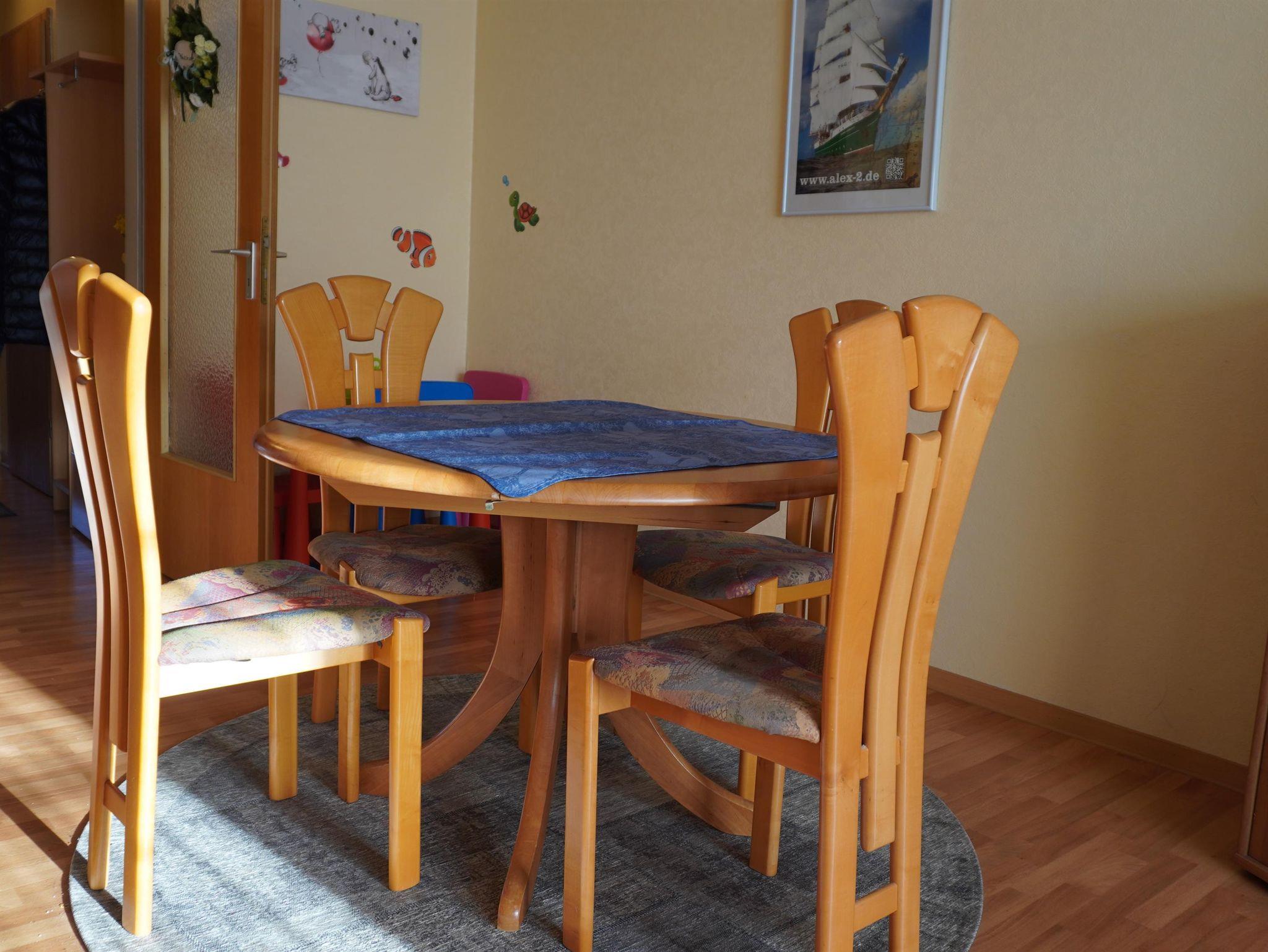 Zur Ausstattung gehört ein Schlafzimmer mit Doppelbett und eine weiteres Schlafdomizil ohne Fenster mit Etagenbett. Ein gemütlicher und heller Wohn- und Essbereich mit integrierter Küchenzeile sowie ein Bad mit Dusche/WC warten auf Sie. Für die Kleinen steht ein Reisebettchen und ein Hochstuhl bereit. WLAN kann kostenfrei genutzt werden.