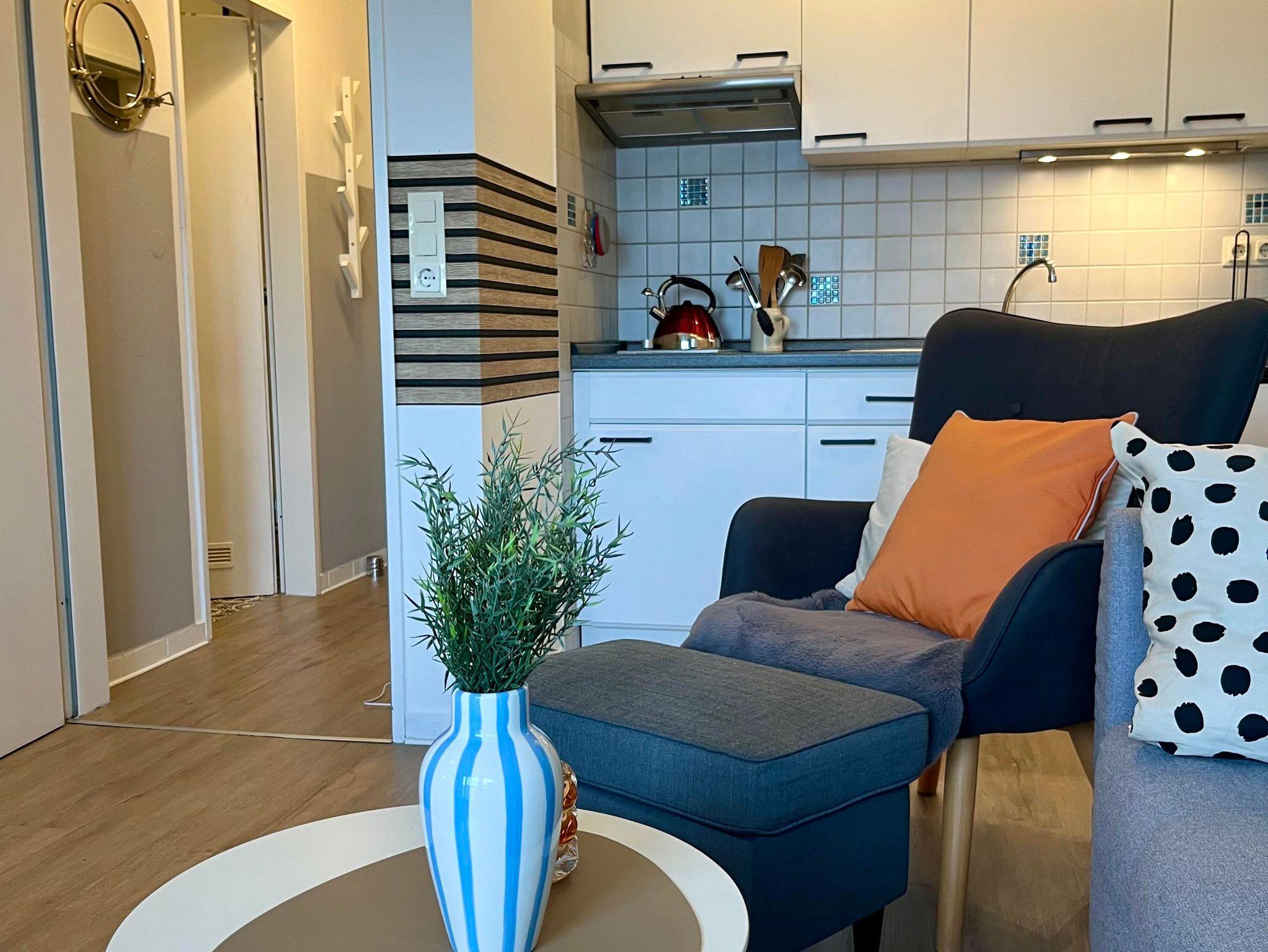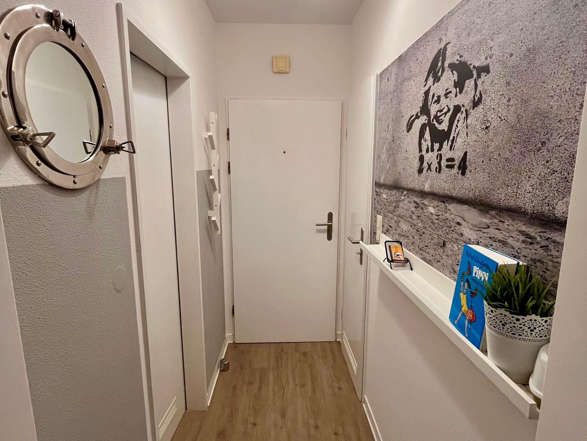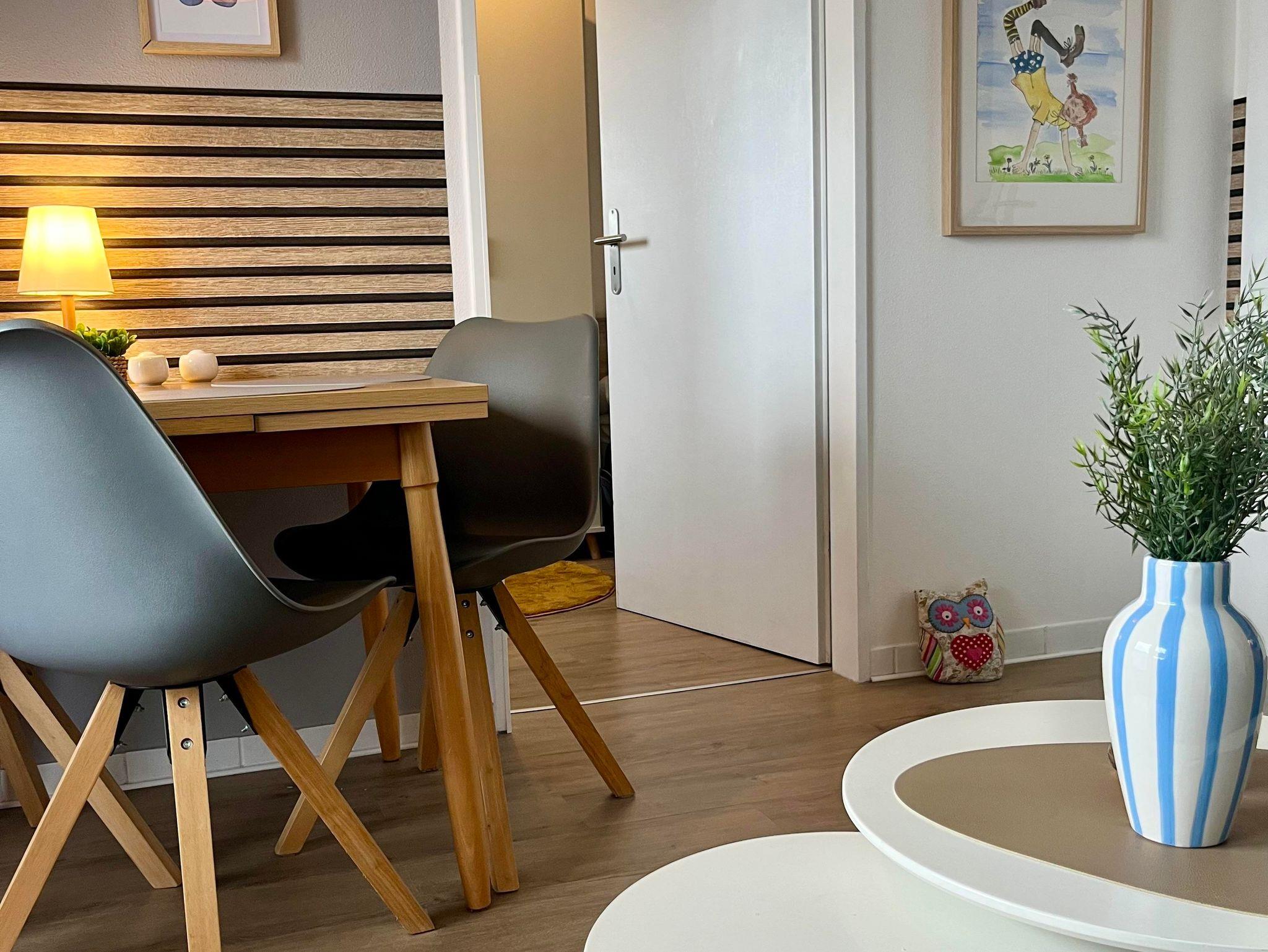 Unsere frisch renovierte Ferienwohnung, im luftigen, skandinavischen Stil, liegt im Appartementhaus Wangerooge (2. Etage). Der Strand, sowie der Ortskern mit Einkaufsmöglichkeiten und diversen Gastronomiebetrieben, sind fußläufig erreichbar. Genießen Sie nach einem erlebnisreichen Urlaubstag die Abendsonne auf dem großen, überdachten Balkon, welcher zum Nordwesten ausgerichtet ist. Von hier aus haben Sie einen Blick in Richtung Deich und können die Spitze von Langeoog sehen. Ein Parkplatz befindet sich direkt vor der Tür. 2 Fahrräder und ein Bollerwagen runden das Angebot unseres Feriendomizils ab.