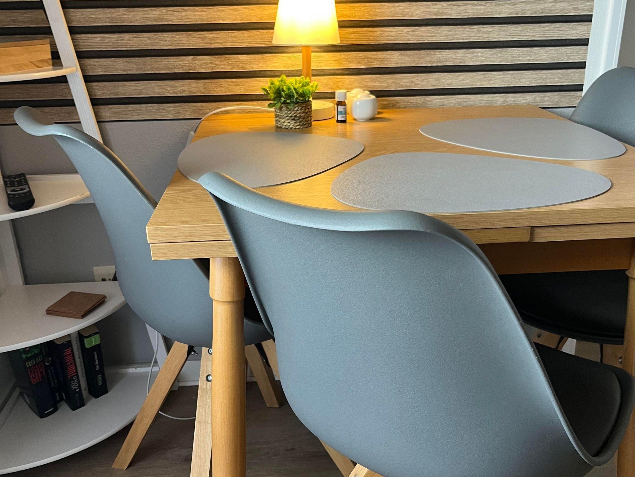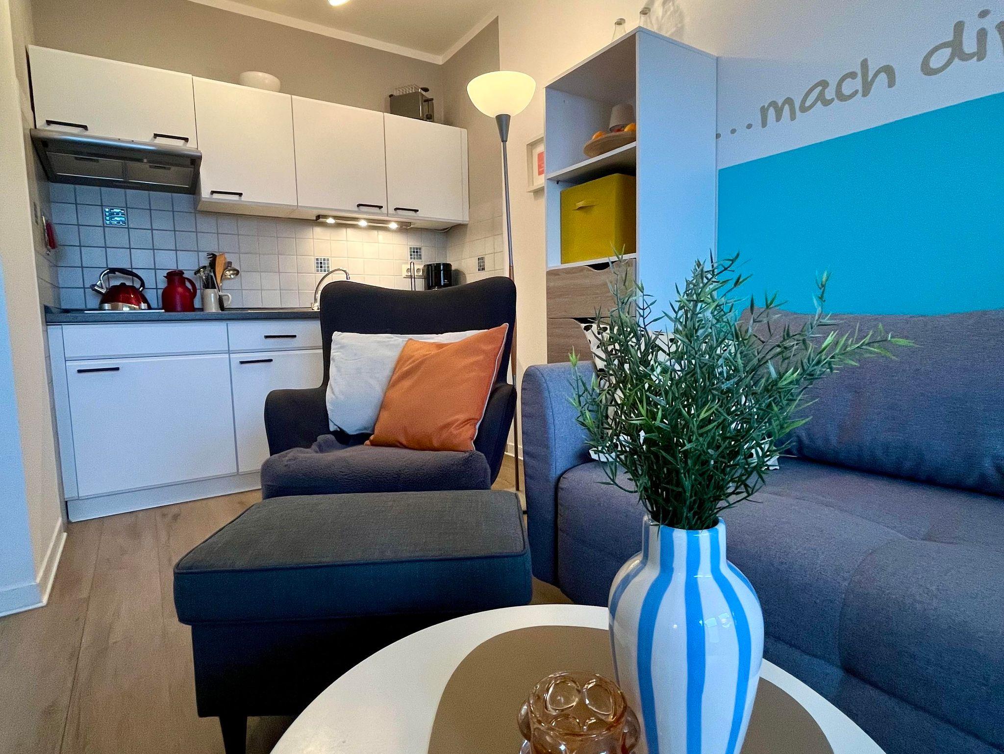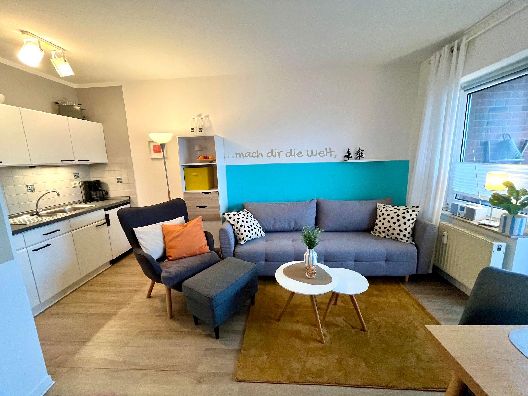 Unsere frisch renovierte Ferienwohnung, im luftigen, skandinavischen Stil, liegt im Appartementhaus Wangerooge (2. Etage). Der Strand, sowie der Ortskern mit Einkaufsmöglichkeiten und diversen Gastronomiebetrieben, sind fußläufig erreichbar. Genießen Sie nach einem erlebnisreichen Urlaubstag die Abendsonne auf dem großen, überdachten Balkon, welcher zum Nordwesten ausgerichtet ist. Von hier aus haben Sie einen Blick in Richtung Deich und können die Spitze von Langeoog sehen. Ein Parkplatz befindet sich direkt vor der Tür. 2 Fahrräder und ein Bollerwagen runden das Angebot unseres Feriendomizils ab.