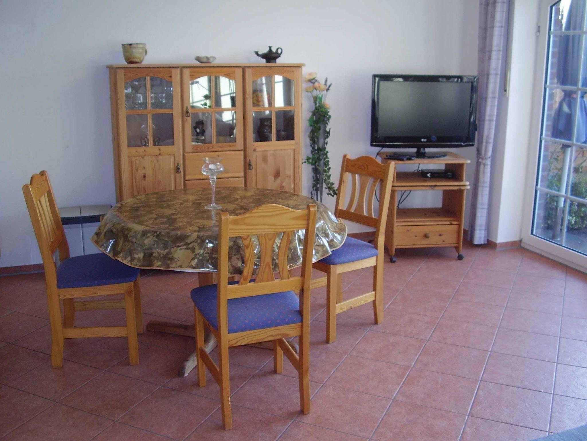 Erdgeschoss: Grosszügiges Wohn- und Esszimmer mit gemütlicher Sitzgruppe und Flachbild-TV mit Satempfang. Einbauküche mit VierPlattenHerd mit Backofen, Kühlschrank, Spülmaschine, Mikrowelle und allen erforderlichen Elektrogeräten. Esstisch mit Bestuhlung. Kinderhochstuhl vorhanden.