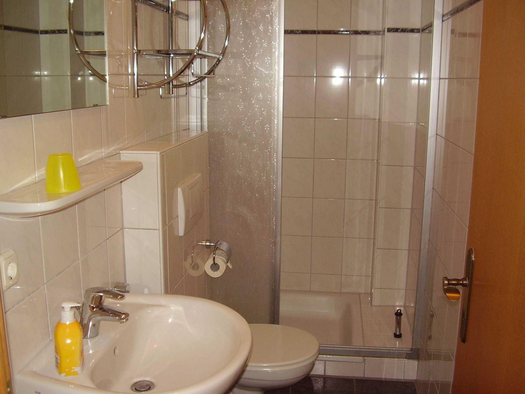 Badezimmer mit Dusche und WC.