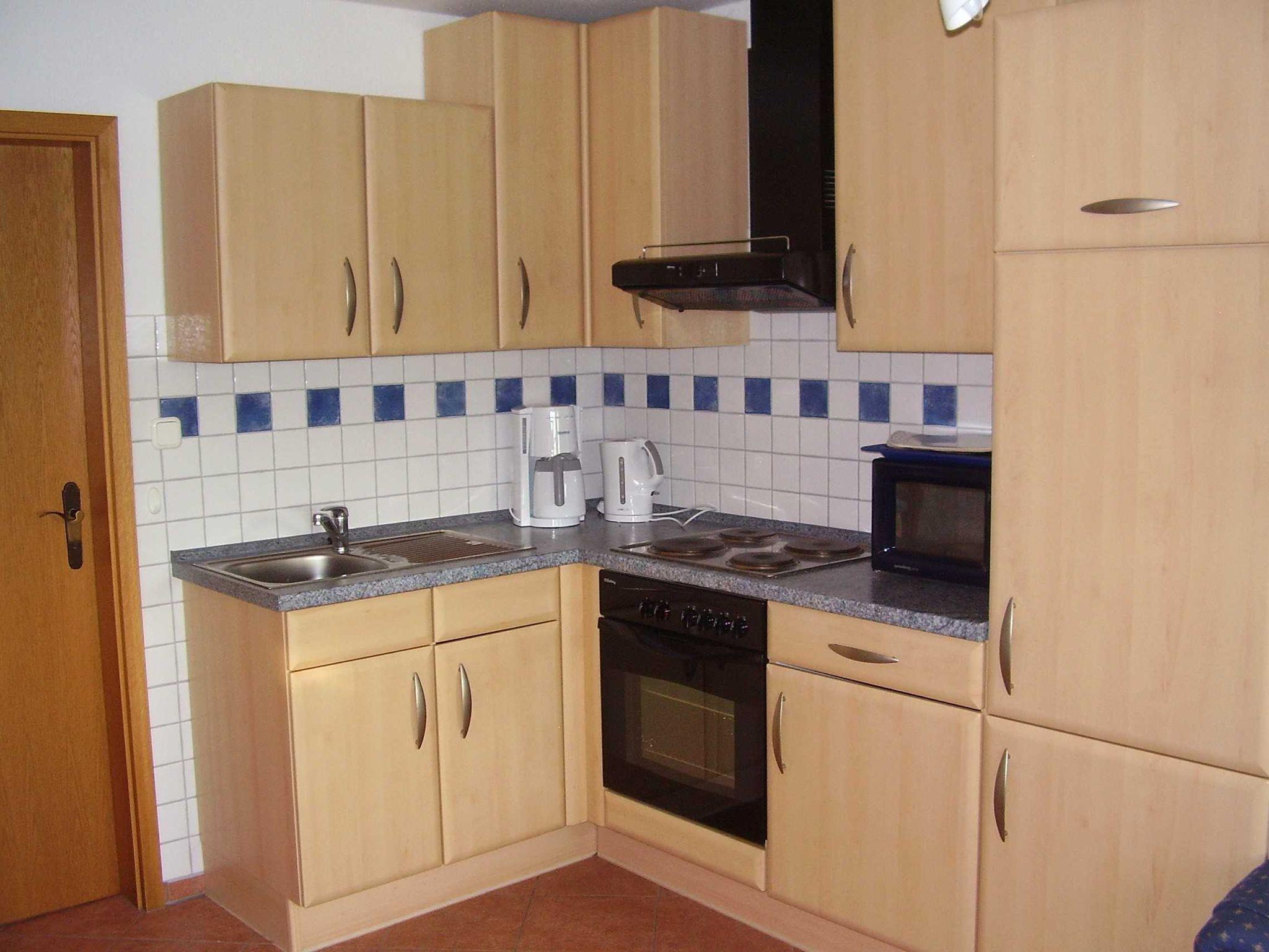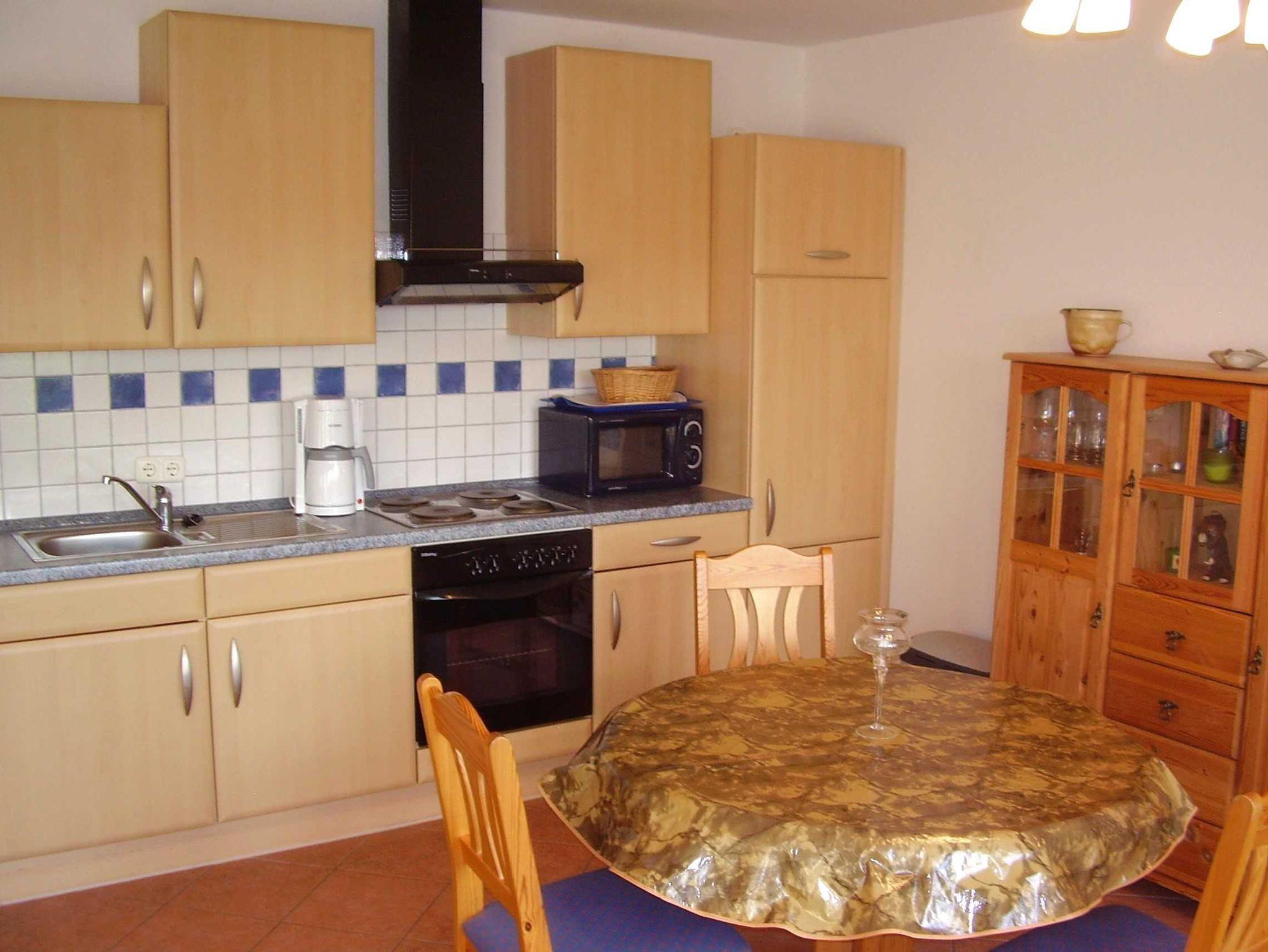 Obergeschoss: Ansprechender Wohn- und Essbereich mit Sitzgruppe und Flachbild-TV, Einbauküche mit einem VierPlattenHerd mit Backofen, Kühlschrank, Mikrowelle und allen erforderlichen Elektrogeräten.