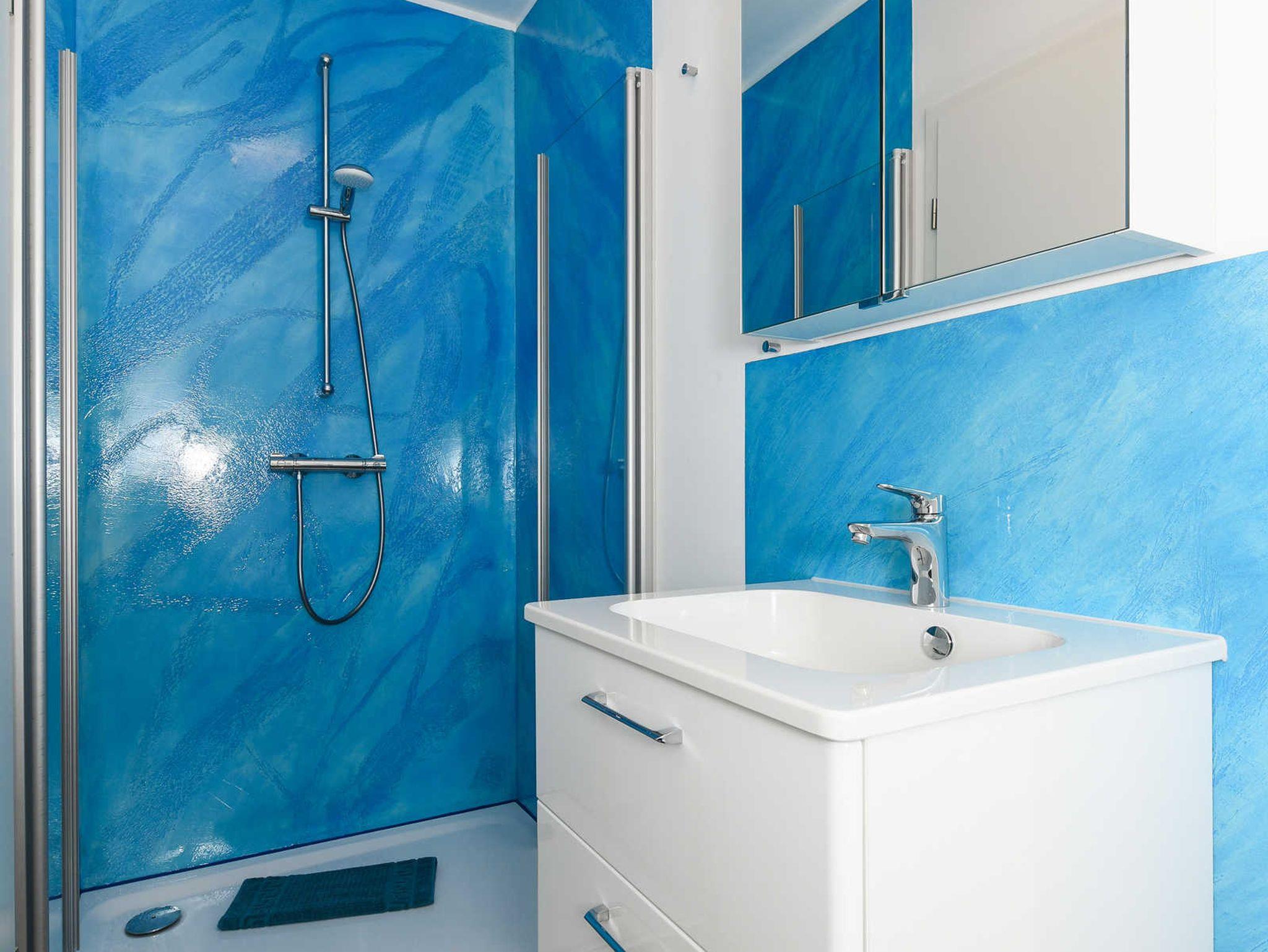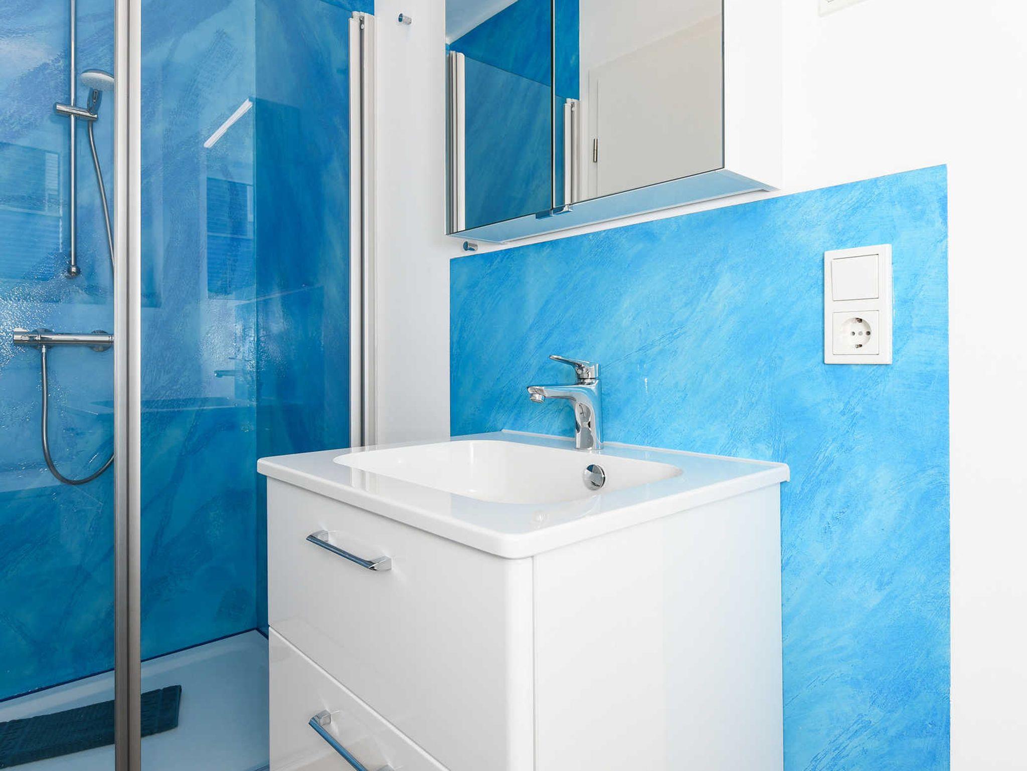 zweites Badezimmer mit Dusche, Waschtisch und WC