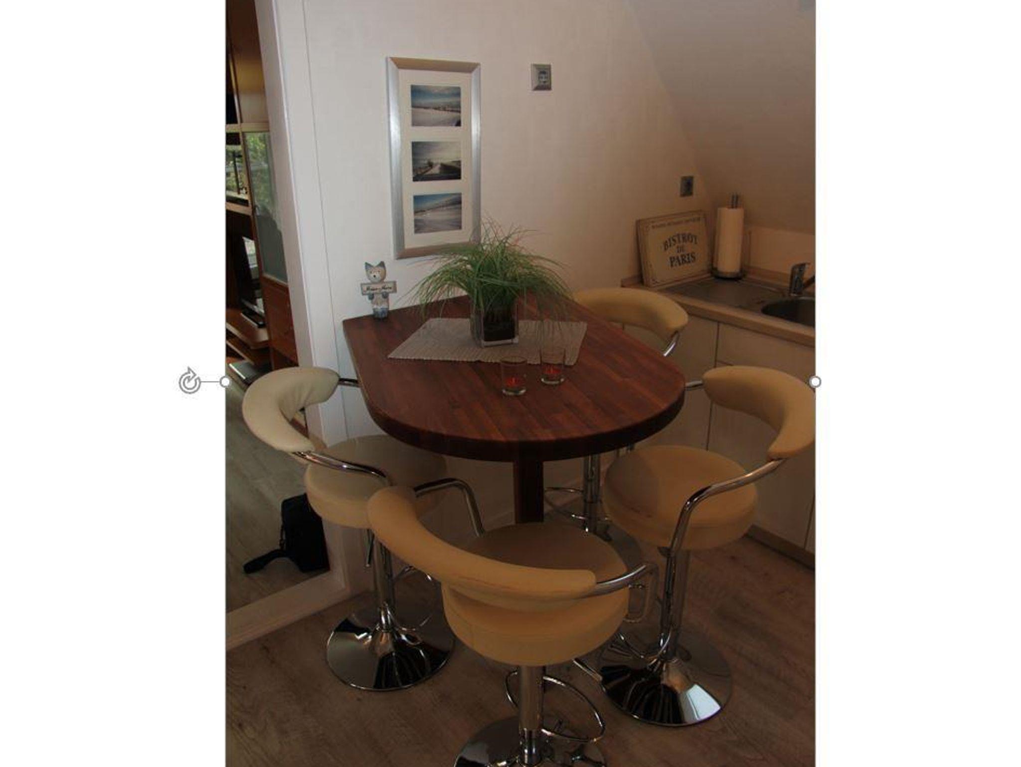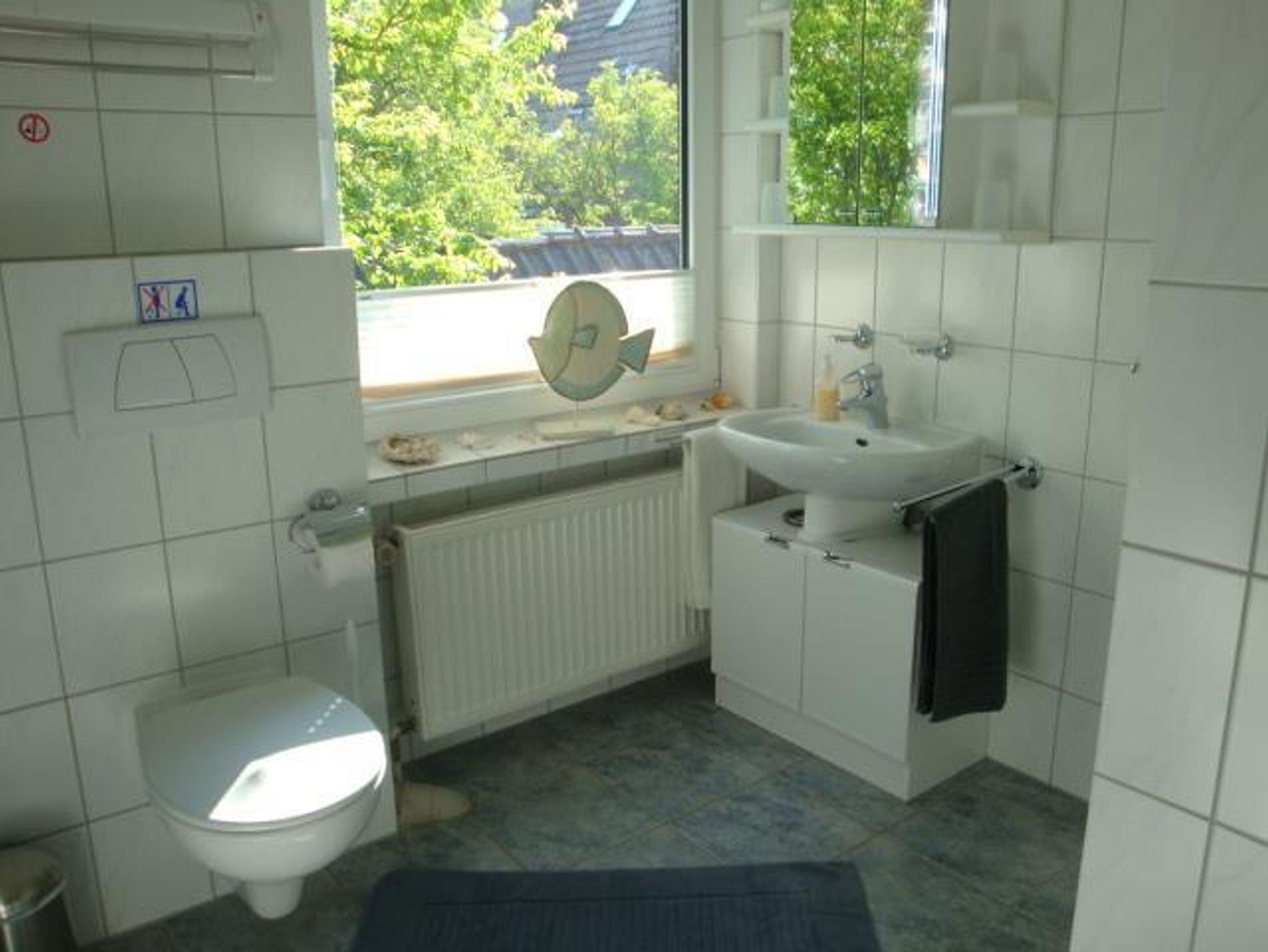 Unsere moderne Ferienwohnung (ca. 75 m²) befindet sich in absoluter Toplage. Bis zum Strand, Meerwasserfreibad und Hafen sind es nur ca. 700m. Unser Haus liegt direkt am idyillischen Speichersee Mahlbusen mit Themenkurpark. Im Sommer können Sie hier wunderbar Angeln und Tretboot fahren. Der Ortskern mit dem Therapie- und Wohlfühlzentrum, Restaurants, Cafes, Einkaufsmöglichkeiten, Fahrradverleihe, uvm. ist in 2-5 Gehminuten zu erreichen. Zu unserer Wohnung (im OG) gehört eine große Dachterrasse (40 m²) mit Markise, Sonnenliegen, Grill und Sitzecke. Hier können Sie richtig abschalten und entspannte Stunden im Freien verbringen, während Ihre Kinder im Garten toben, schaukeln und im Sandkasten spielen können. Der Garten ist auschließlich für unsere Gäste. Wenn Sie Meer wollen... kommen Sie zu uns! Das komfortable Wohnzimmer ist mit mit einer gemütlichen Couchgarnitur sowie SAT-TV ausgestattet. Außerdem ist eine offene Küche mit Tresen und Barhockern als Essecke vorhanden. Als Schlafdomiziele dienen ein Doppelzimmer und ein Zweibettzimmer. Für unsere kleinen Gäste haben wir einen Kinderhochstuhl und ein Kinderbett.