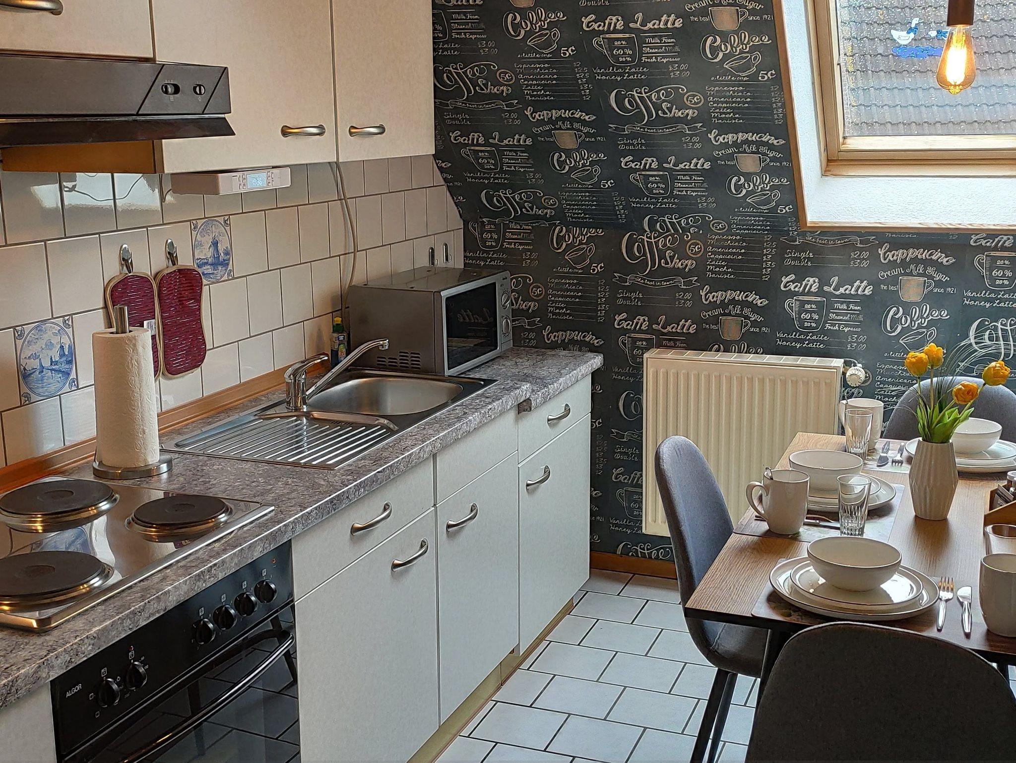 Die Wohnung verfügt über ein Schlafzimmer mit einem Doppelbett und einem Einzelbett. Ein Wohnzimmer mit gemütlicher Sitzecke und TV Gerät. In der Küche stehen Ihnen Herd/Backofen, Mikrowelle, Toaster, Kaffeemaschine, Wasserkocher und Eierkocher zur Verfügung. Im Badezimmer befindet sich eine Dusche, WC und Waschbecken.