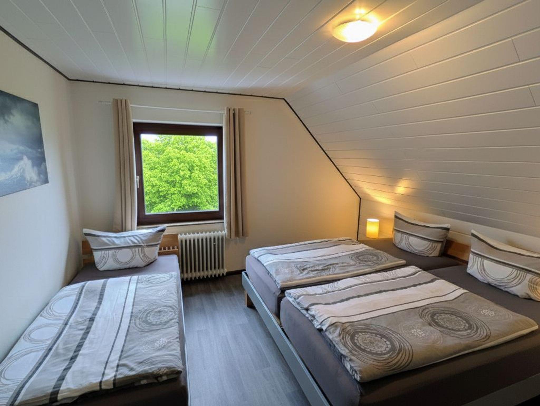 Die Wohnung West verfügt über ein Schlafzimmer mit einem Doppelbett und einem Einzelbett (auf Wunsch kann ein Babybett aufgestellt werden), einem Wohnzimmer mit Sat-TV, gemütlicher Sitzecke, einer komplett eingerichteten Küche, sowie einem Duschbad.