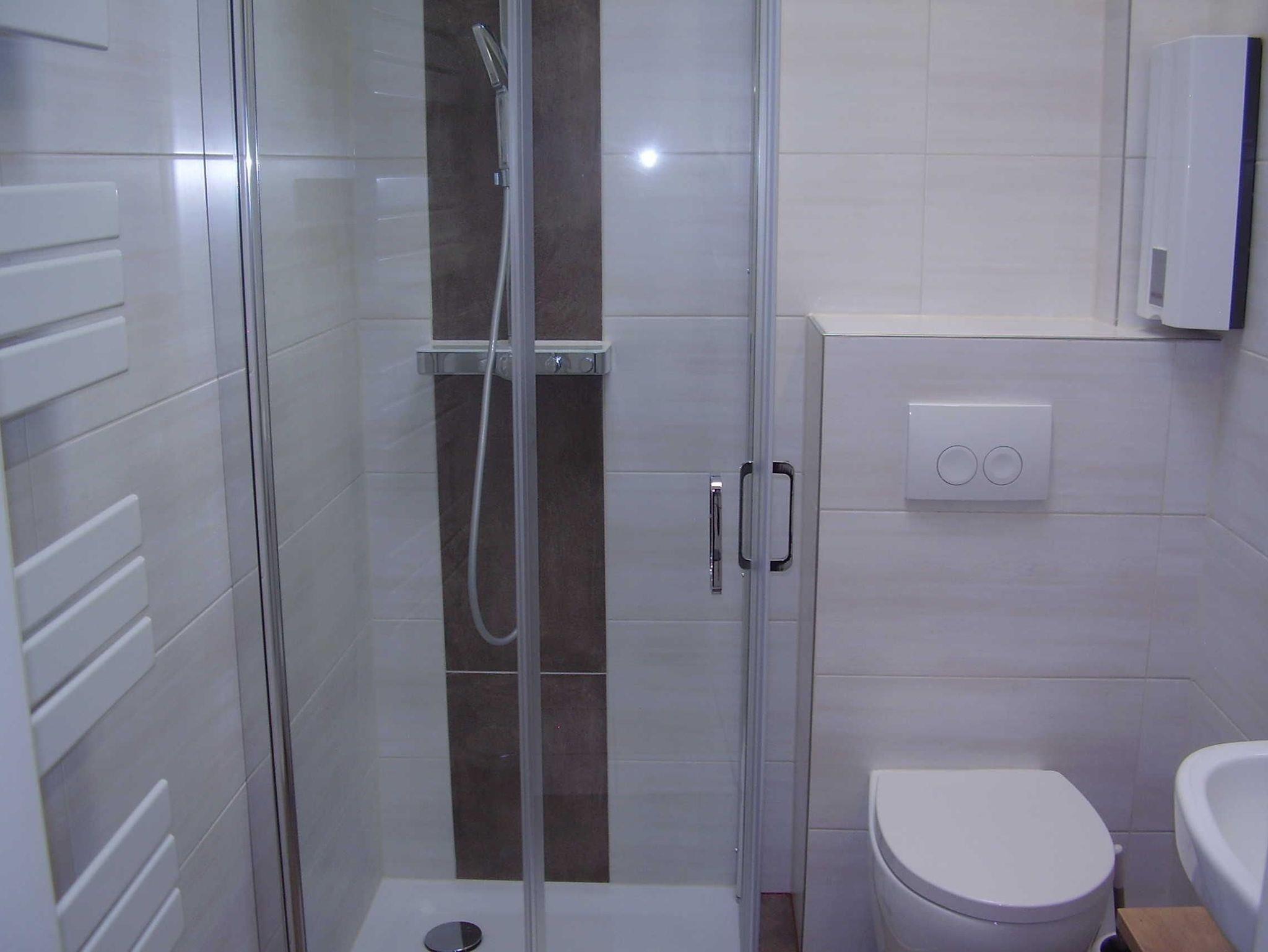 Modernes Badezimmer mit Dusche und WC.