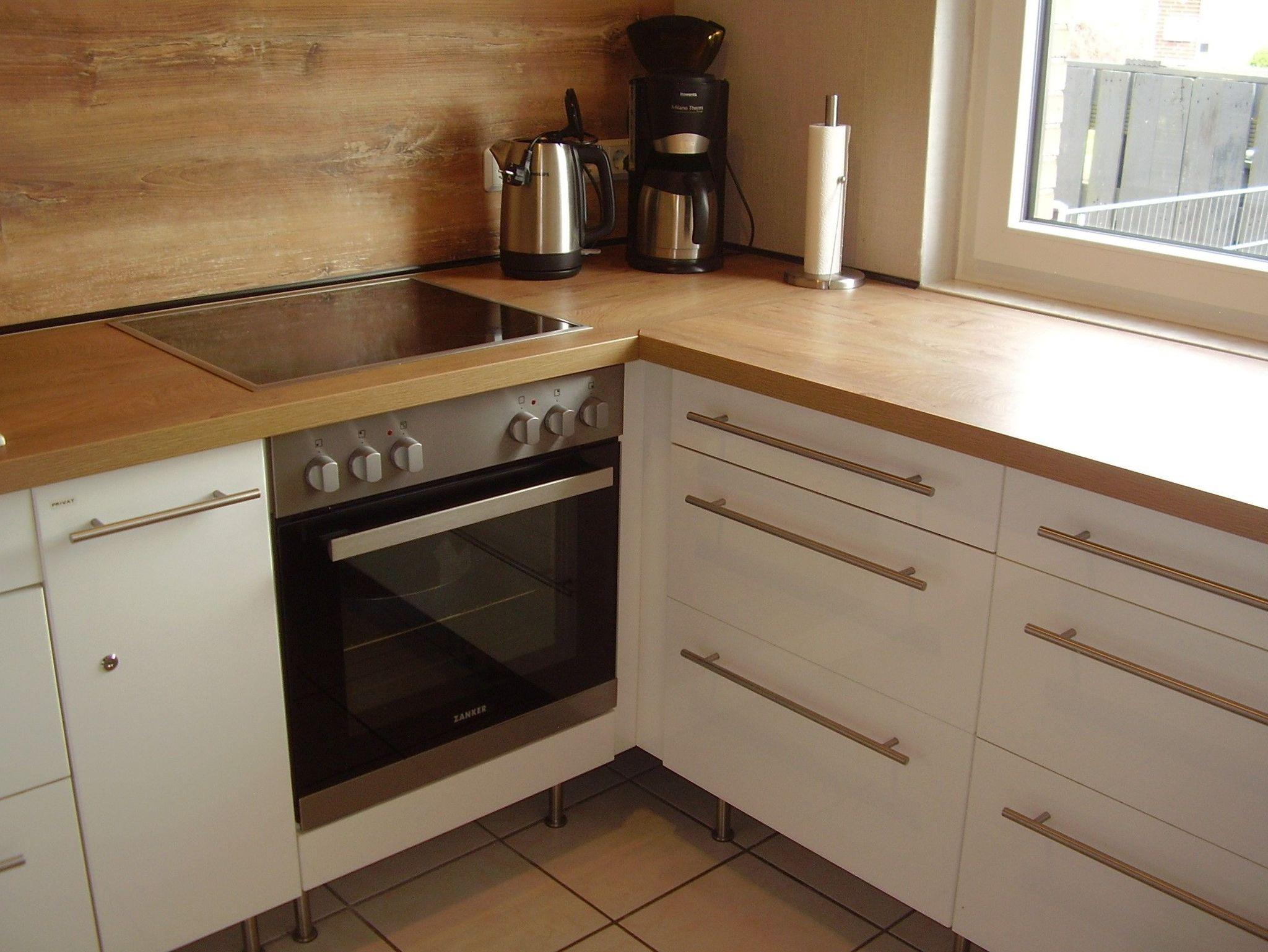 Separate Küche mit EBK mit 4-Plattenherd mit Ceranfeld und Backofen, Kühlschrank mit Gefrierfach, Waschmaschine, Mikrowelle und allen erforderlichen Elektrogeräten.
