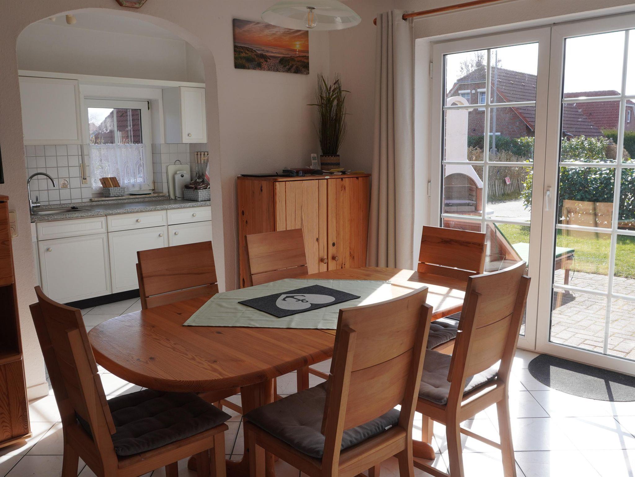 Unser freistehendes Ferienhaus befindet sich in ruhiger Lage. Die windgeschützte Südterrasse mit Gartenmöbeln und Liege sowie ein großer Grillkamin, und Liegewiese laden zu einem angenehmen Aufenthalt im Freien ein. Ergänzt wird die Ausstattung durch einen separaten Vorrats- und Geräteraum, 2 Fahrräder, einen PKW-Abstellplatz und Rollläden im Erd- und Obergeschoss.