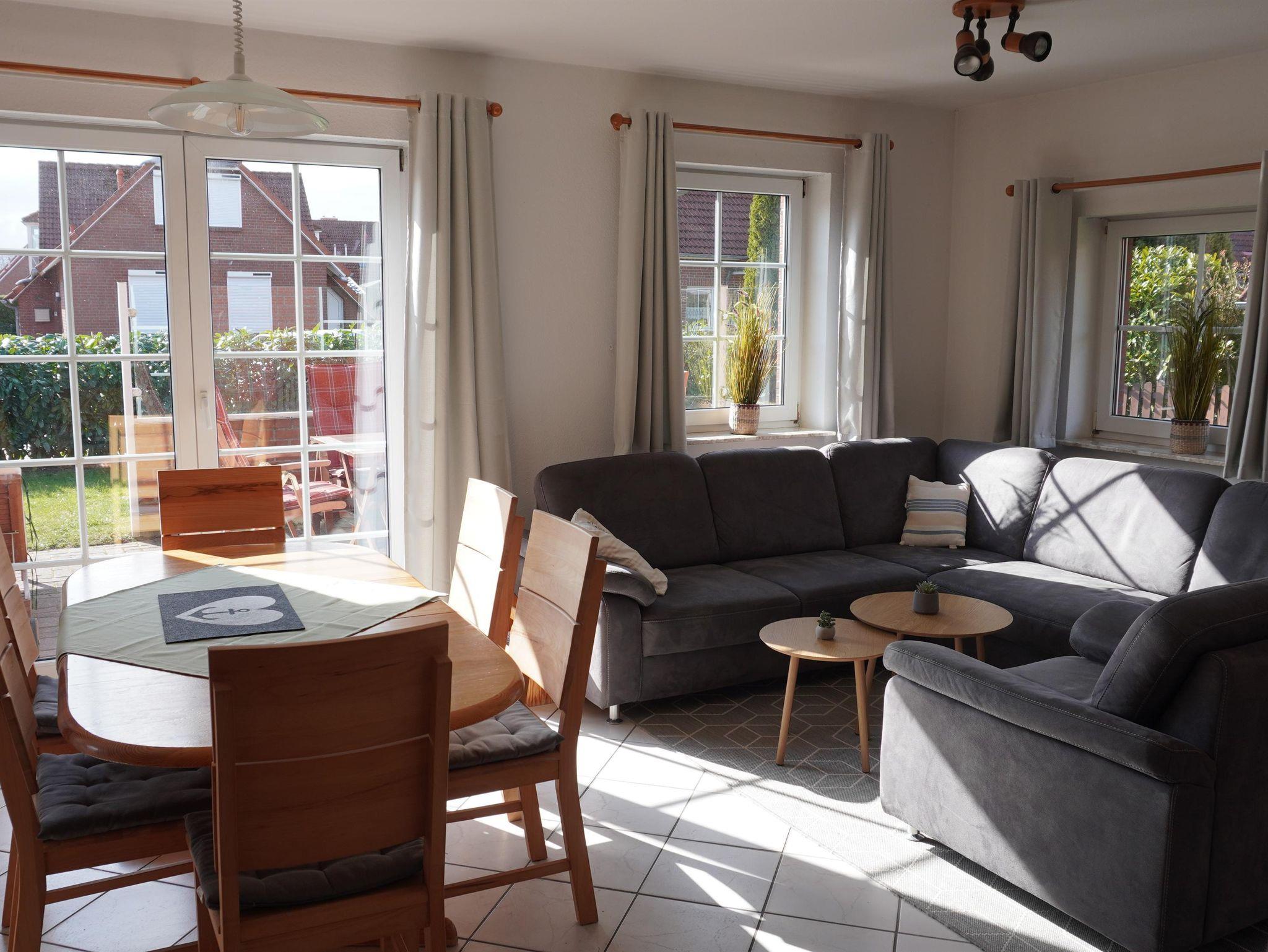 Auf ca. 100 m² Wohnfläche erwarten Sie ein geschmackvoll und gemütlich eingerichtetes Wohnzimmer mit digitalem Full-HD TV, DVD-Player, Videorekorder und einer Stereoanlage mit CD/MC sowie kostenloses Internet über W-LAN und Telefon mit Festnetzflat. Die helle Einbauküche wird komplettiert durch Umluftbackofen, Geschirrspüler, Kühlschrank mit Gefrierfach, Mikrowelle und allen erforderlichen Haushaltsgeräten. Die Bäder sind mit Dusche und WC sowie einer Waschmaschine und einem Wäschetrockner ausgestattet. Ein Schlafzimmer befindet sich im Erdgeschoss. Zwei räumlich großzügig ausgestattete Schlafzimmer im Obergeschoss sind zusätzlich mit einem Schreibtisch bzw. einem Kinderbett ausgestattet. Ein Hochstuhl steht ebenfalls zur Verfügung. Wir wünschen Ihnen einen angenehmen Aufenthalt.