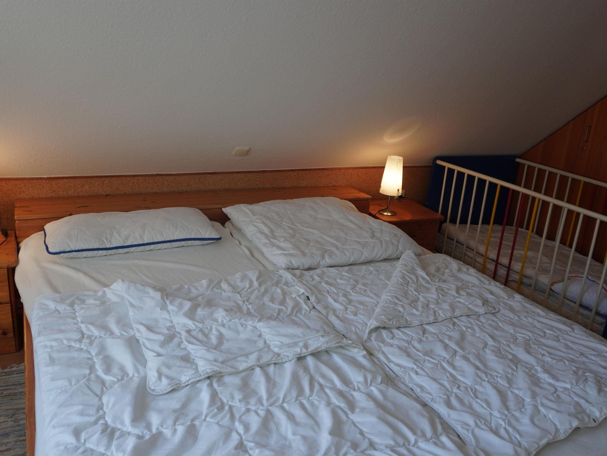 Auf einer Wohnfläche von ca. 80m² sind im Erdgeschoss eine komplett eingerichtete separate Küche und ein gemütlich gestalteter Wohn-/Essbereich. Für Unterhaltung sorgen neben einem SAT-TV mit DVD-Player auch Spiele und Bücher, WLAN ist ebenfalls verfügbar. Im Obergeschoss werden Sie 2 Schlafdomizile (Doppel- und Zweibettzimmer) vorfinden. Das Bad verfügt über Dusche/WC und einer Waschmaschine. Unseren kleinen Gästen bieten wir ein Kinderbett und ein Hochstuhl.