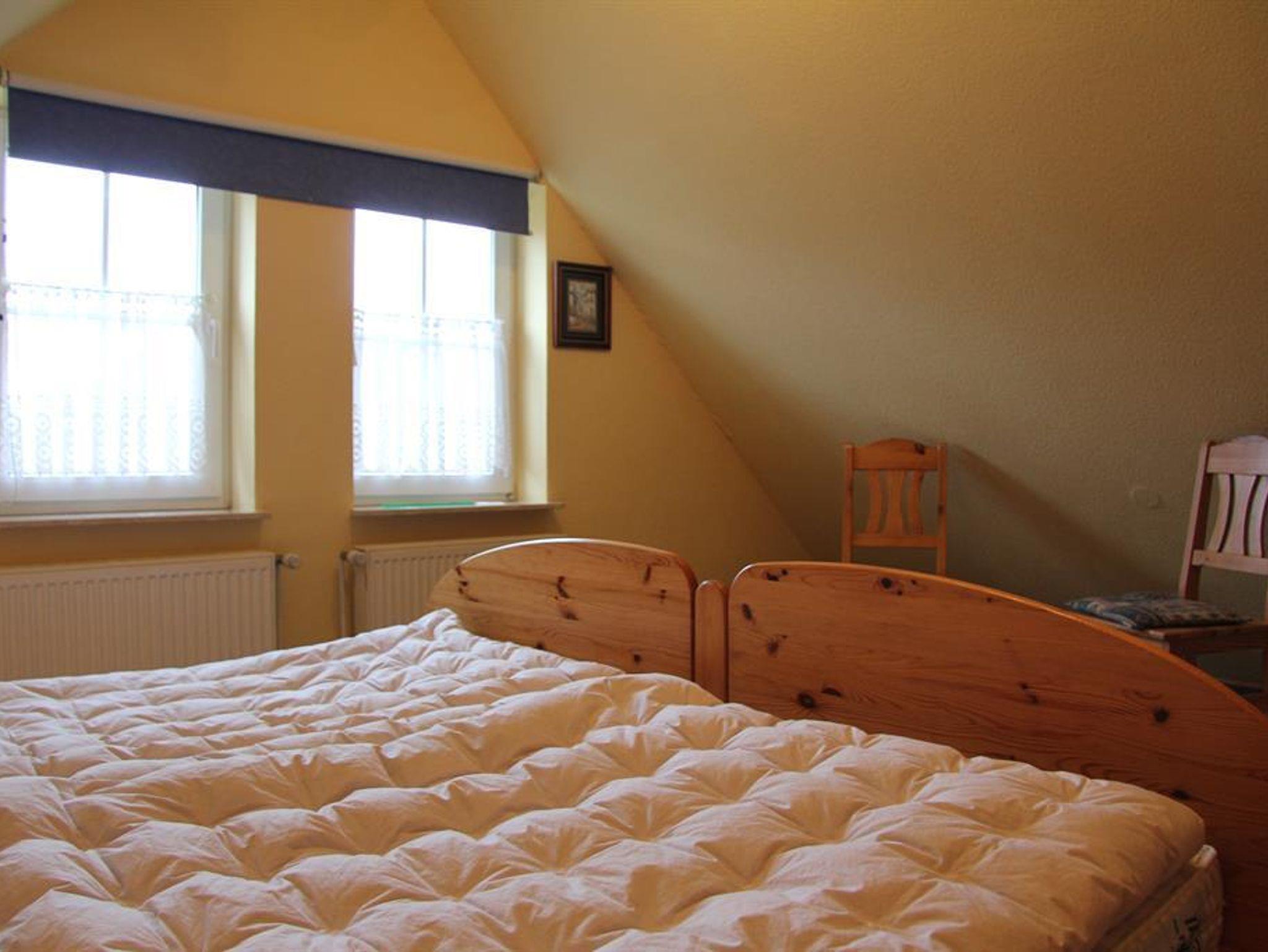 Im Erdgeschoss befindet sich ein Wohn-, Esszimmer mit F-Sat-TV, DVD-Player und Stereoanlage, sowie ein Bad mit Badewanne und integrierter Dusche, WC und Waschmaschine und das erste Schlafdomizil mit Doppelbett. Im Obergeschoss erwarten Sie dann die andere zwei Schlafdomizile (ein Doppelbett, 1 Einzelbett), sowie ein Gästebad bestehend aus WC und Waschbecken. Für unsere kleinen Gäste finden Sie im Haus ein Babybett, sowie zwei Kinderhochstühle.
