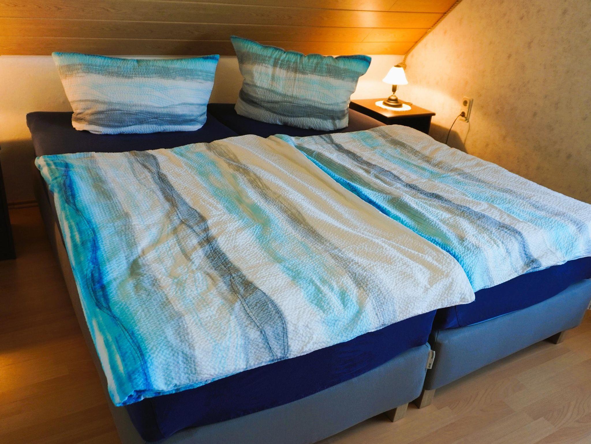Ein Wohnraum mit kleiner Küchenzeile und Sat-LED TV, ein Schlafzimmer mit Doppelbett und Lesesessel, sowie ein kleiner Raum mit 2 Einzelbetten wartet hier auf Sie. Das Bad ist zweckmäßig ausgestattet mit Waschbecken, Dusche und einem WC.
