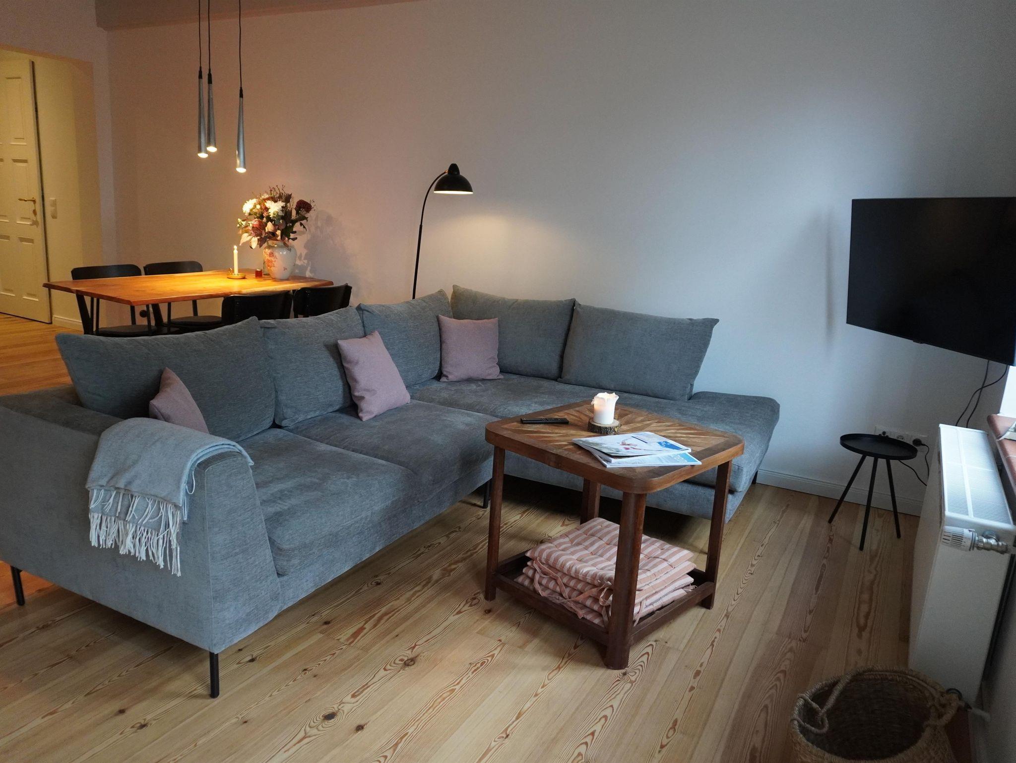 Omas Küche: Die 48m² große Erdgeschosswohnung war früher ein zentraler Punkt für die ganze Familie. Der große Wohn- und Essbereich ist mit einer vollausgestatteten Küche, ein Essbereich, einer großen Schlafcouch, ein gemütlichen Sessel und Sat-TV ausgestattet. Als Schlafmöglichkeit dient ein Doppelzimmer und die Schlafcouch. Das Badezimmer ist mit einem WC und einer Dusche ausgestattet. Die Terrasse ist nach Südwest ausgerichtet.