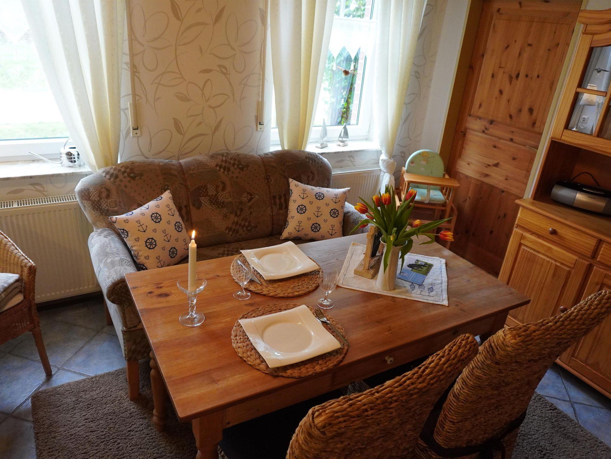 Die Fewo Langeoog mit ca. 60m² befindet sich im Erdgeschoss und hat eine kleine sichtgeschütze Terrasse. Die Wohnung bietet Platz für 4 Personen + Baby. Das Wohnzimmer ist ausgestattet mit Flach-Sat-TV und einer gemütlichen Sitzgarnitur. Über den großen Flur gelangen Sie in die separate große Küche. Das Bad ist ausgestattet mit Dusche, WC und Fenster.