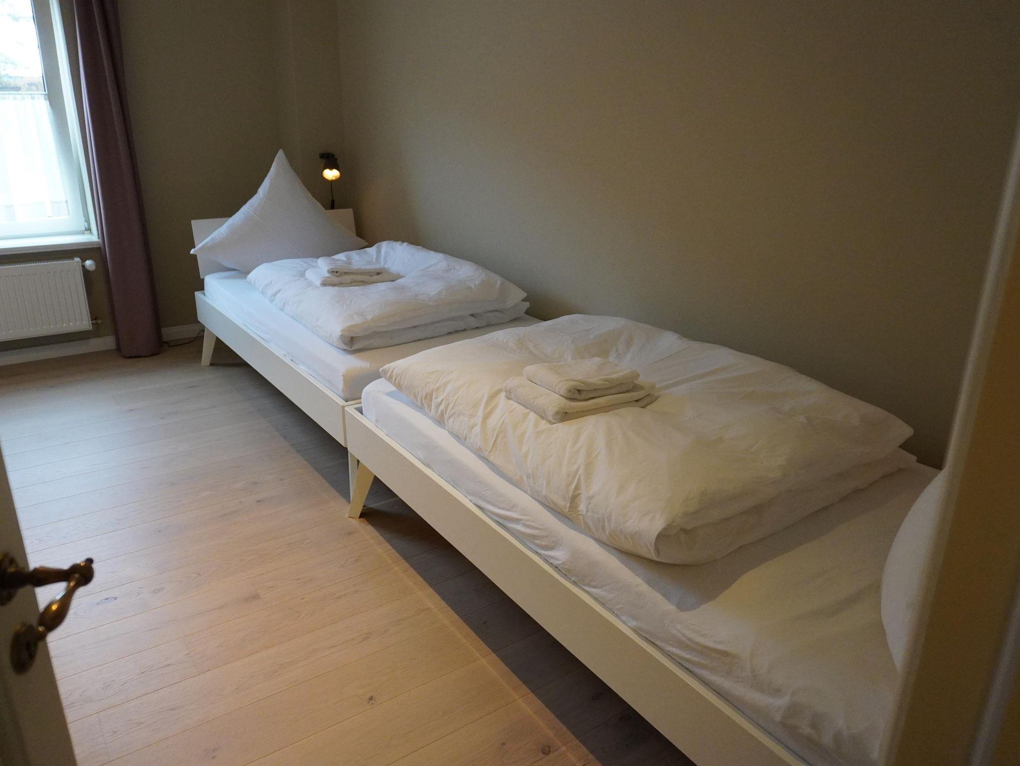 Kaarnhaus: Das alte Kaarnhaus stellt ehemals die Verbindung zwischen Wirtschafts- und Wohngebäude da. Jetzt ist hier eine 79m² gemütliche Wohnung für vier Personen entstanden. Im Erdgeschoss befindet sich der Wohn- und Essbereich mit einem gemütlichen Kamin, einer vollausgestatteten Küche, eine Couch und ein Sat-Tv. Im Obergeschoss ist ein Doppelzimmer sowie ein Zweibettzimmer vorhanden. Außerdem befindet sichim Obergeschoss das Badezimmer mit einem WC und einer Dusche. Die Terrasse ist nach Südwesten ausgerichtet.