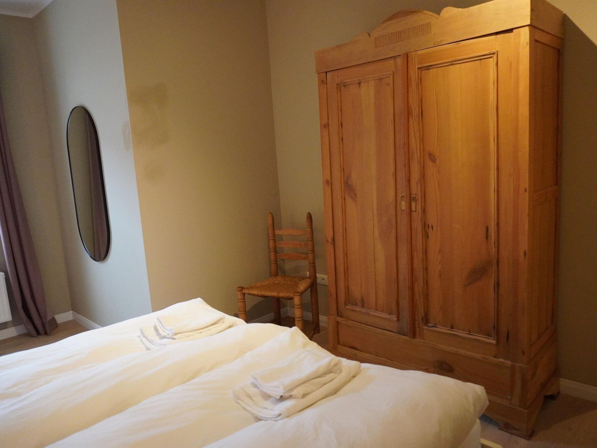 Mädchenzimmer: Das Mädchenzimmer ist eine 65m² große Oberwohnung in der histroische Elemente mit modernen kombiniert wurden. Der Ess- und Wohnbereich beinhaltet eine vollausgestattete Küche, ein Esstisch für vier Personen, eine gemütliche Couch und ein Sat-TV. Ein großes Doppelzimmer und ein Zweibettzimmer dienen als Schlafmöglichkeit. Das Badezimmer ist mit einem WC und einer Dusche ausgestattet. Der Balkon ist nach Südwest ausgerichtet.