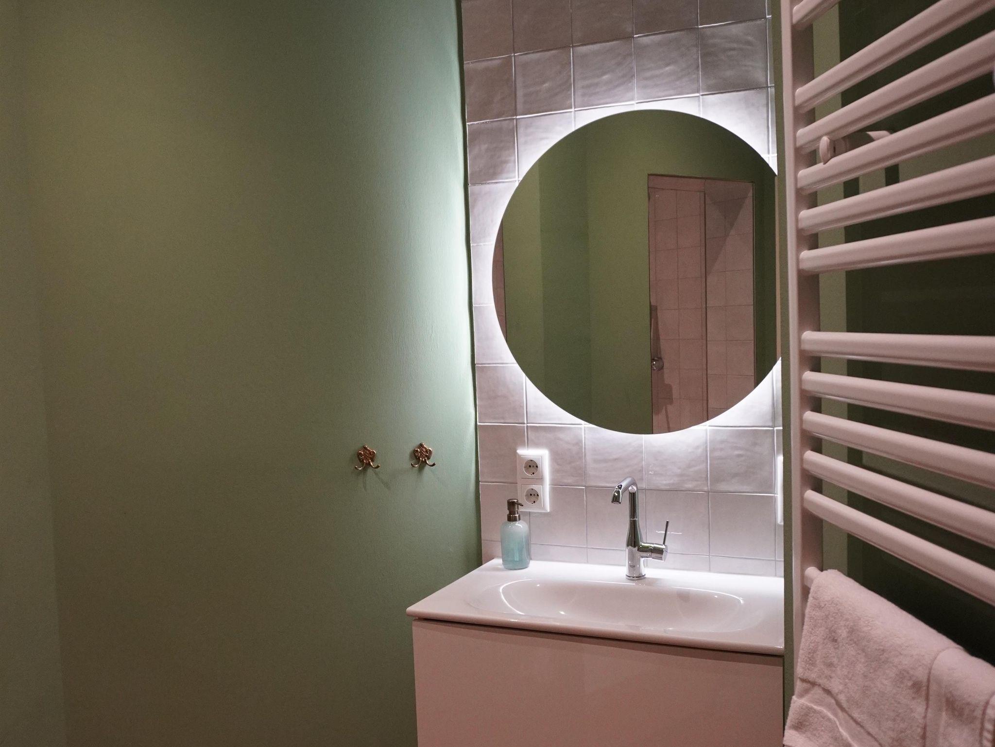 Studio: Das Studio ist mit 34m² die kleinste aller sieben Wohnungen. Das lichtdurchflutete Zimmer ist mit einem kombinierten Wohn- und Schlafbereich einen Hotelzimmer nachempfunden. Die kleine Küchenniesche bietet dennoch genügend Platz zum Kochen. Das Badezimmer ist mit einem WC und einer Dusche ausgestattet.