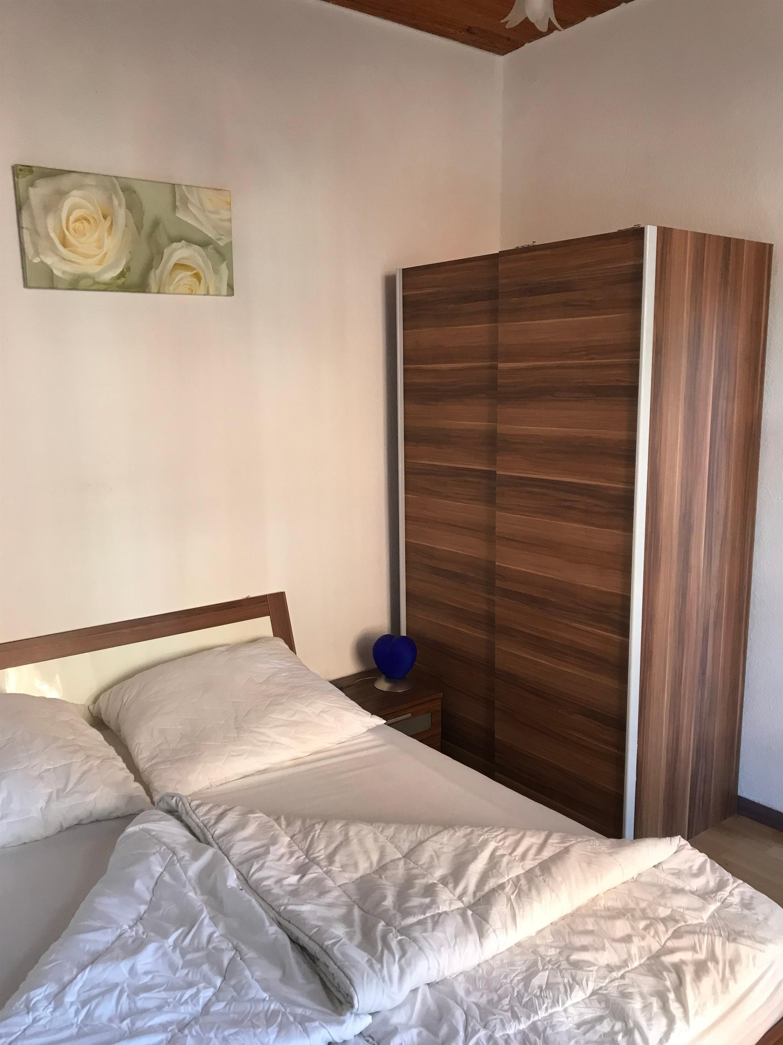 Das Schlafzimmer hat ein Doppelbett (2 x 80 x 200 cm).