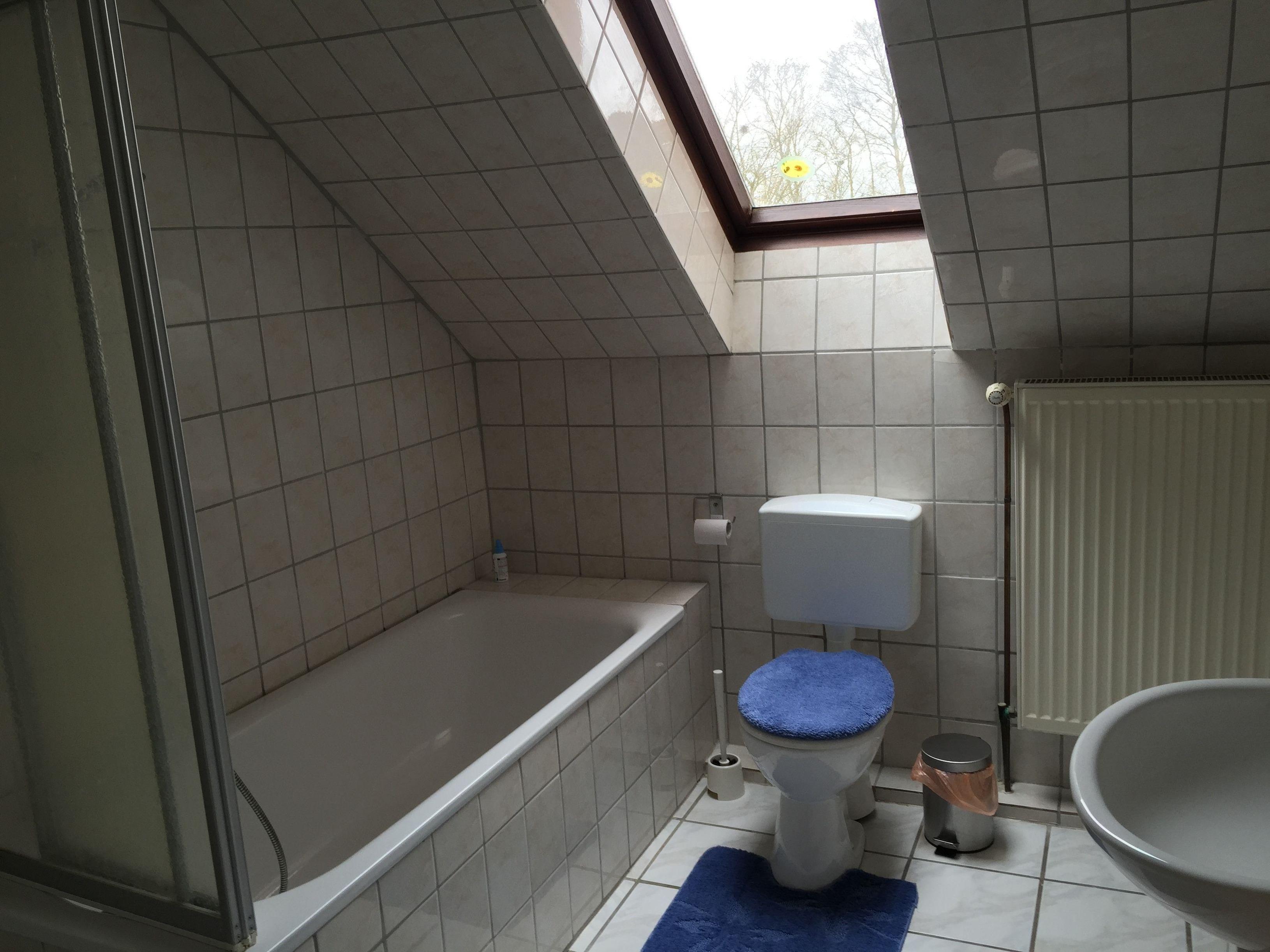 Das Badezimmer ist mit einer Badewanne ausgestattet.