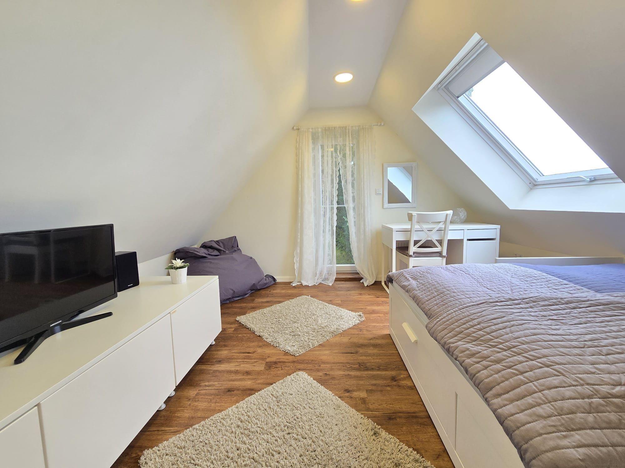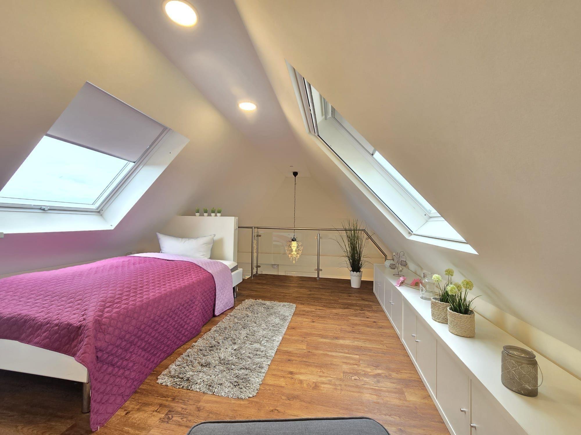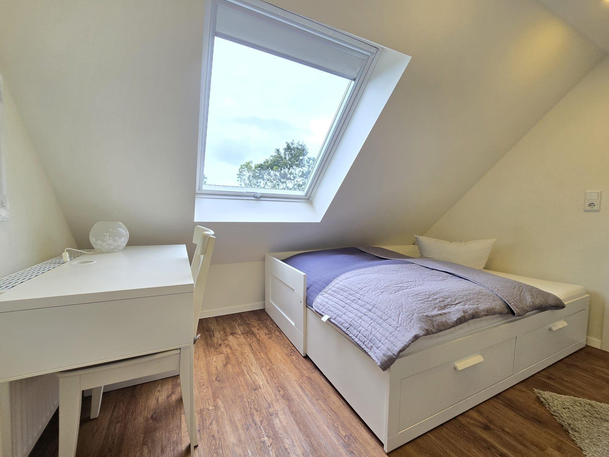 Die Ferienwohnung bietet eine moderne und komfortable Ausstattung, ideal für einen entspannten Aufenthalt. Sie verfügt über zwei Schlafzimmer mit zwei Doppelbetten und einem Einzelbett, die Allergiker geeignet sind. Die offene Küche ist mit einem Geschirrspüler, Elektro-/Gasherd, Backofen, Mikrowelle, Kühlschrank, Kaffeemaschine und Toaster ausgestattet. Ein Kinderhochstuhl steht bereit. Das Badezimmer mit Fenster und einer bodengleichen Dusche samt einem Gäste-WC sorgt für zusätzlichen Komfort.
