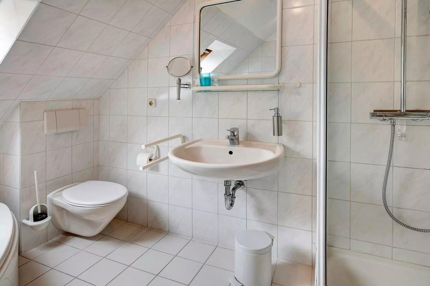Badeværelse med bruser og badekar