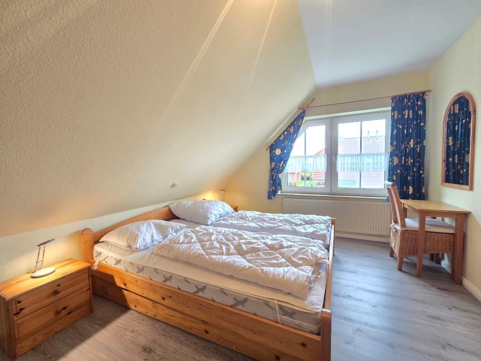 Die charmante Doppelhaushälfte in Neßmersiel bietet auf zwei Etagen Platz für bis zu 4 Personen und einen Hund. Im Erdgeschoss befindet sich ein offener Wohn- und Essbereich, ausgestattet mit einer komfortablen Couch, Büchern und Gesellschaftsspielen. Die moderne Küche ist vollständig ausgestattet und beinhaltet eine Spülmaschine, einen Backofen, eine Mikrowelle sowie eine Filterkaffeemaschine. Ein Gäste-WC rundet das Erdgeschoss ab. Im Obergeschoss gibt es zwei Schlafzimmer: eines mit Doppelbett und eines mit zwei Einzelbetten. Das helle Badezimmer verfügt über eine ebenerdige Dusche und eine Waschmaschine. WLAN, TV und eine Stereoanlage sind ebenfalls vorhanden. Kinderbett und Hochstuhl können bereitgestellt werden, sodass der Aufenthalt für Familien angenehm gestaltet ist. Bettwäsche und Handtücher sind auf Wunsch gegen Aufpreis verfügbar.