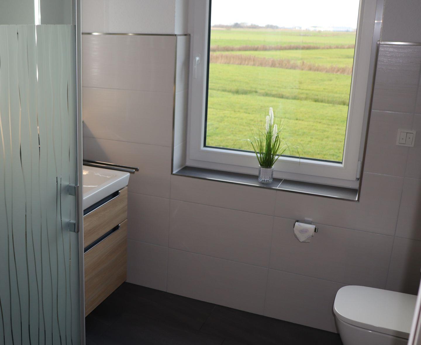 Das geschmackvoll eingerichtete Ferienhaus überzeugt im Erdgeschoss mit einem großzügigen Wohn- und Essbereich, einer voll ausgestatteten Küche, einem Hauswirtschaftsraum mit Waschmaschine sowie einem Gäste-WC. Vom Wohnbereich aus gelangen Sie auf die große Terrasse, von der sich ein herrlicher Blick über die weiten Felder von Dornum eröffnet.