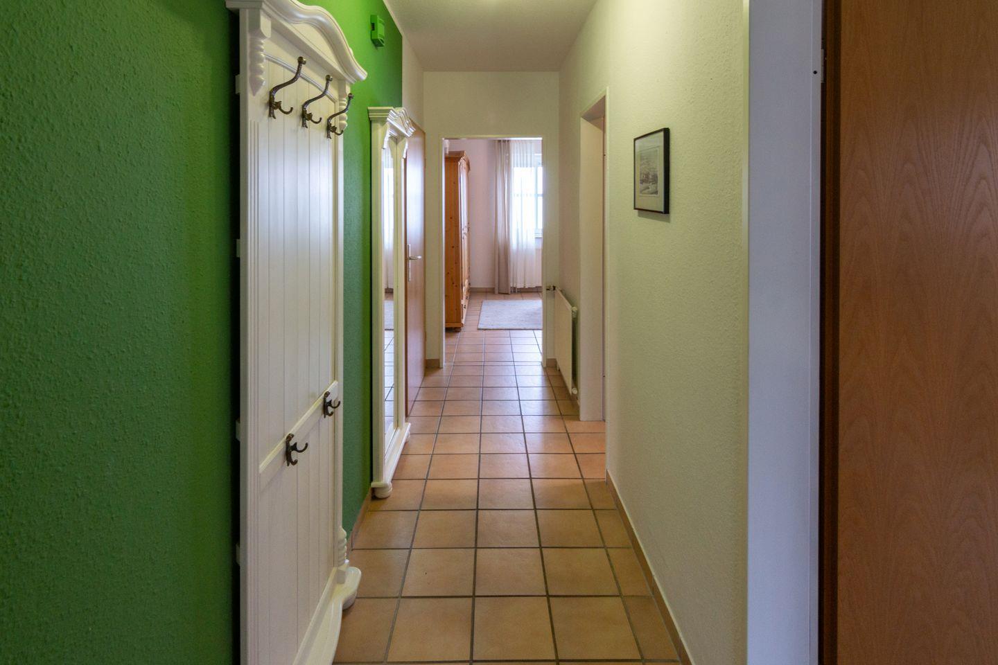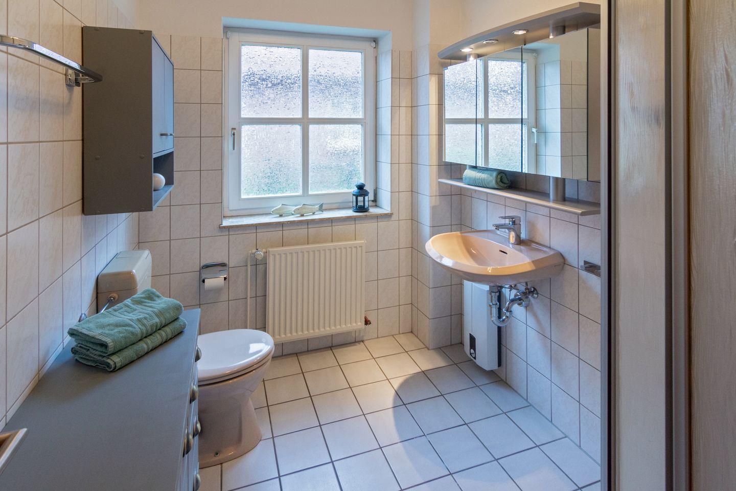 Die Ferienwohnung befindet sich in einem 4-Parteien-Haus und verfügt über einen Wohn- und Essbereich mit voll ausgestatteter Küche, zwei Schlafzimmer (eines mit Ehebett und eines mit zwei Einzelbetten) und ein Duschbad mit WC. Für die Kleinsten ist ein Kinderreisebett und ein Hochstuhl vorhanden. Zur Wohnung gehört eine eingezäunte Terrasse und ein Gemeinschaftsgarten. Wenn Sie aus der Haustür treten, fällt der Blick sofort auf Wiesen, Felder und die Windmühle von Westeraccum. Die Wohnung befindet sich in ruhiger Siedlungslage und bietet den idealen Startpunkt für Fahrradtouren. Besonders sehenswert ist auch der historische Ortskern von Dornum mit der Beninga-Burg, dem Wasserschloss, der Mühle, der Kirche und den kleinen Gassen.