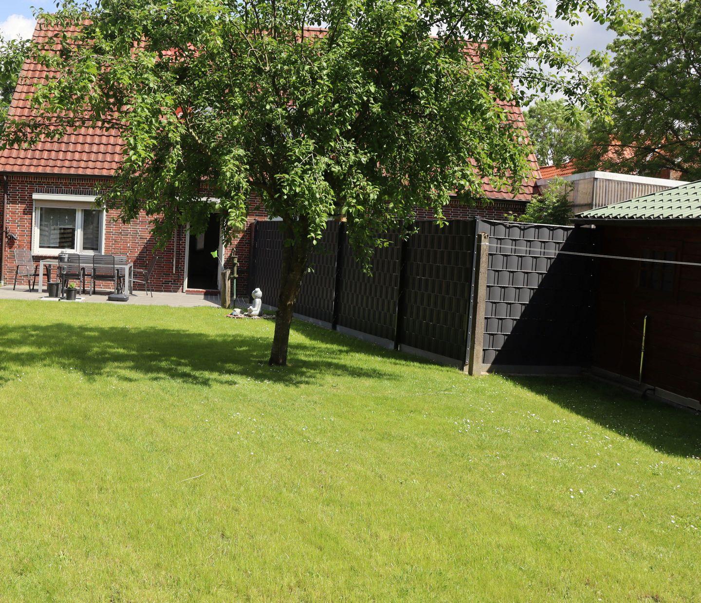 Der komplett eingezäunte Garten erstreckt sich über ca. 500 m² – ideal, damit sich auch Ihr Hund frei und sicher bewegen kann.