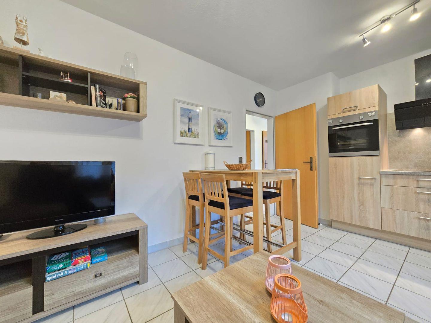 Erleben Sie einen entspannten Urlaub in unserer modernen, hellen Ferienwohnung in Neßmersiel, ideal für bis zu 4 Personen. Die stilvoll eingerichtete Wohnung bietet eine großzügige Wohnfläche, die zum Wohlfühlen einlädt. Große Fenster sorgen für lichtdurchflutete Räume und eine angenehme Atmosphäre