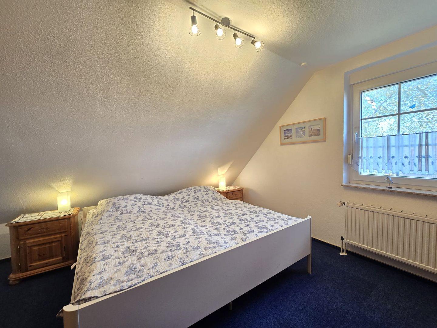 Das Haus verfügt über zwei Schlafzimmer mit Doppelbetten, ein 2025 renoviertes Gästebad mit Fenster im Erdgeschoss sowie ein modernes Tageslichtbad mit Dusche im Obergeschoss. Im eingezäunten Garten mit sonniger Terrasse lässt es sich herrlich entspannen.