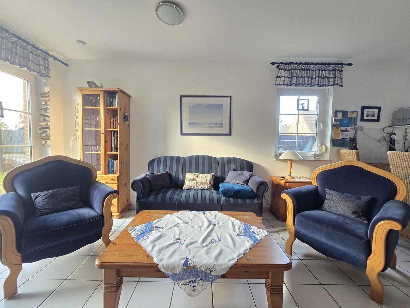 Wohn- und Essbereich: Der helle Wohnbereich lädt zum Entspannen ein. Große Fenster sorgen für Tageslicht, während die gemütliche Einrichtung und moderne Ausstattung für Wohlfühlatmosphäre sorgen.