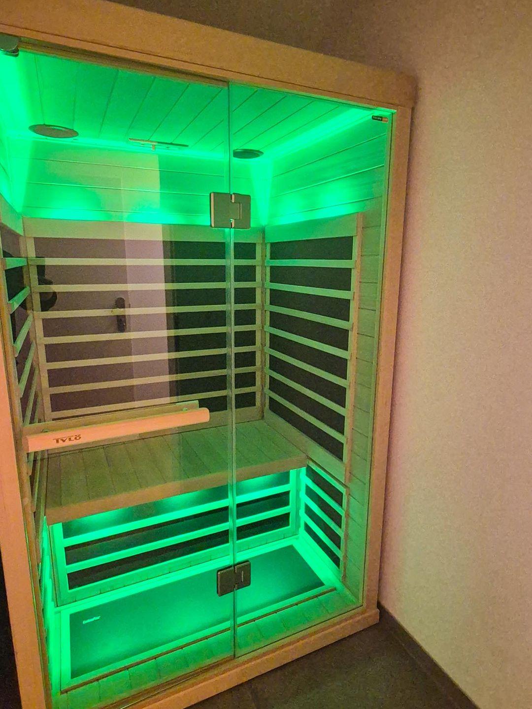 Eine eingebaute Infrarotsauna steht zu jeder Jahreszeit zur kostenlosen privaten Benutzung zur Verfügung.