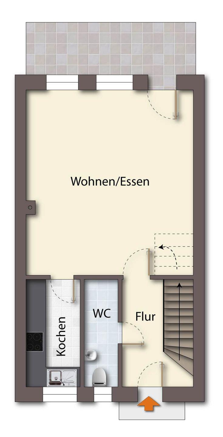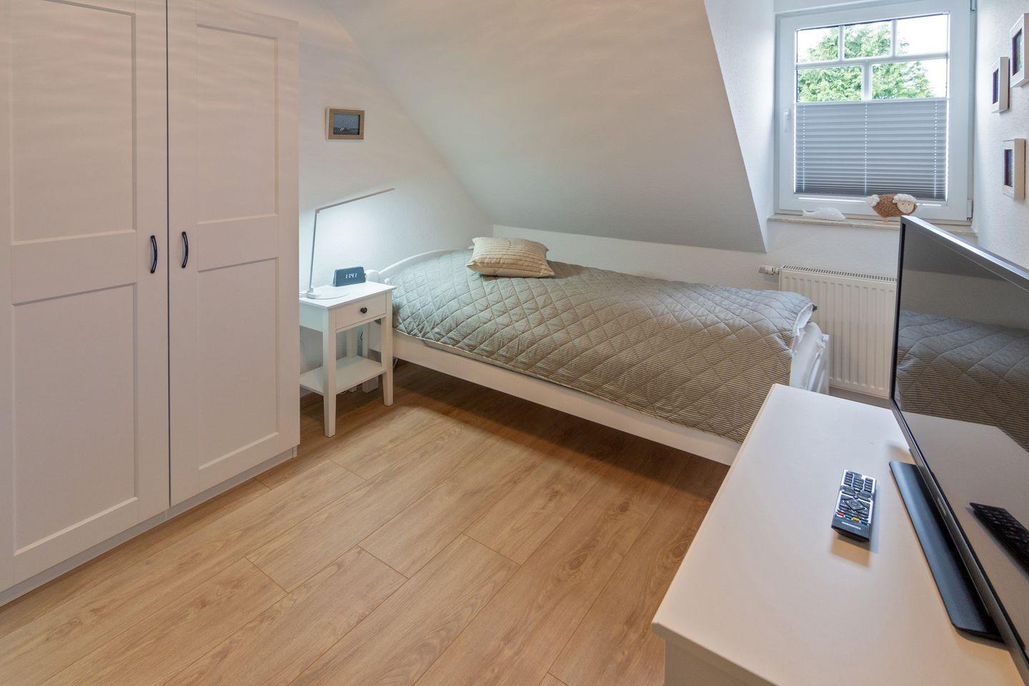 Das gepflegte Reihenhaus in Dornumergrode verfügt im Erdgeschoss über einen Wohn- und Essbereich mit separater, voll ausgestatteter Küche und ein Duschbad mit WC. Im Obergeschoss befindet sich ein Schlafzimmer mit einem Doppelbett, ein weiteres Schlafzimmer mit zwei Einzelbetten und ein Wannenbad mit WC. Über eine gut begehbare Treppe gelangen Sie ins ausgebaute Dachgeschoss. Hier befindet sich ein weiteres Einzelbett. Zum Haus gehört eine Terrasse und ein eigener PKW-Stellplatz.