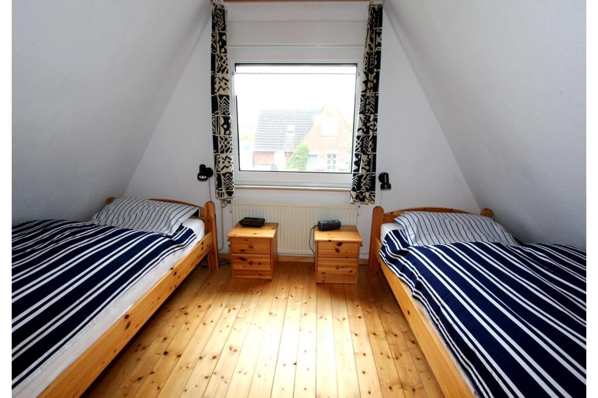 Enjoy relaxing days in this quiet bungalow located at the end of a cul-de-sac, just steps from the dike and close to the beach. The garden with its terrace invites you to sunbathe and unwind – perfect for families with children. All the furniture, flooring, and the modern shower room have been completely renovated. The house offers a comfortable living room with a seating area, dining area, and access to the terrace. The master bedroom has a double bed, and the children's room is equipped with a practical pull-out bed for two people. The separate kitchen is functionally furnished, and the bright bathroom has a shower and toilet. Amenities: Satellite TV (81cm), DVD player, CD stereo system, ceramic hob with oven, microwave, refrigerator***, washing machine, dryer, toaster, kettle, garden furniture, barbecue, handcart, one women's and one men's bicycle. Garage, bicycle storage, and parking space are available. Non-smoking house, no pets allowed.
