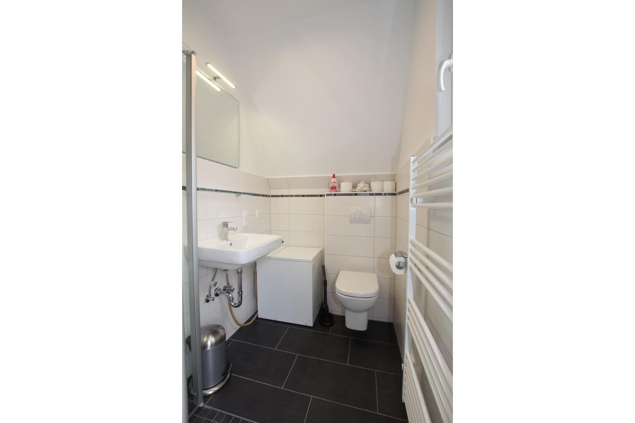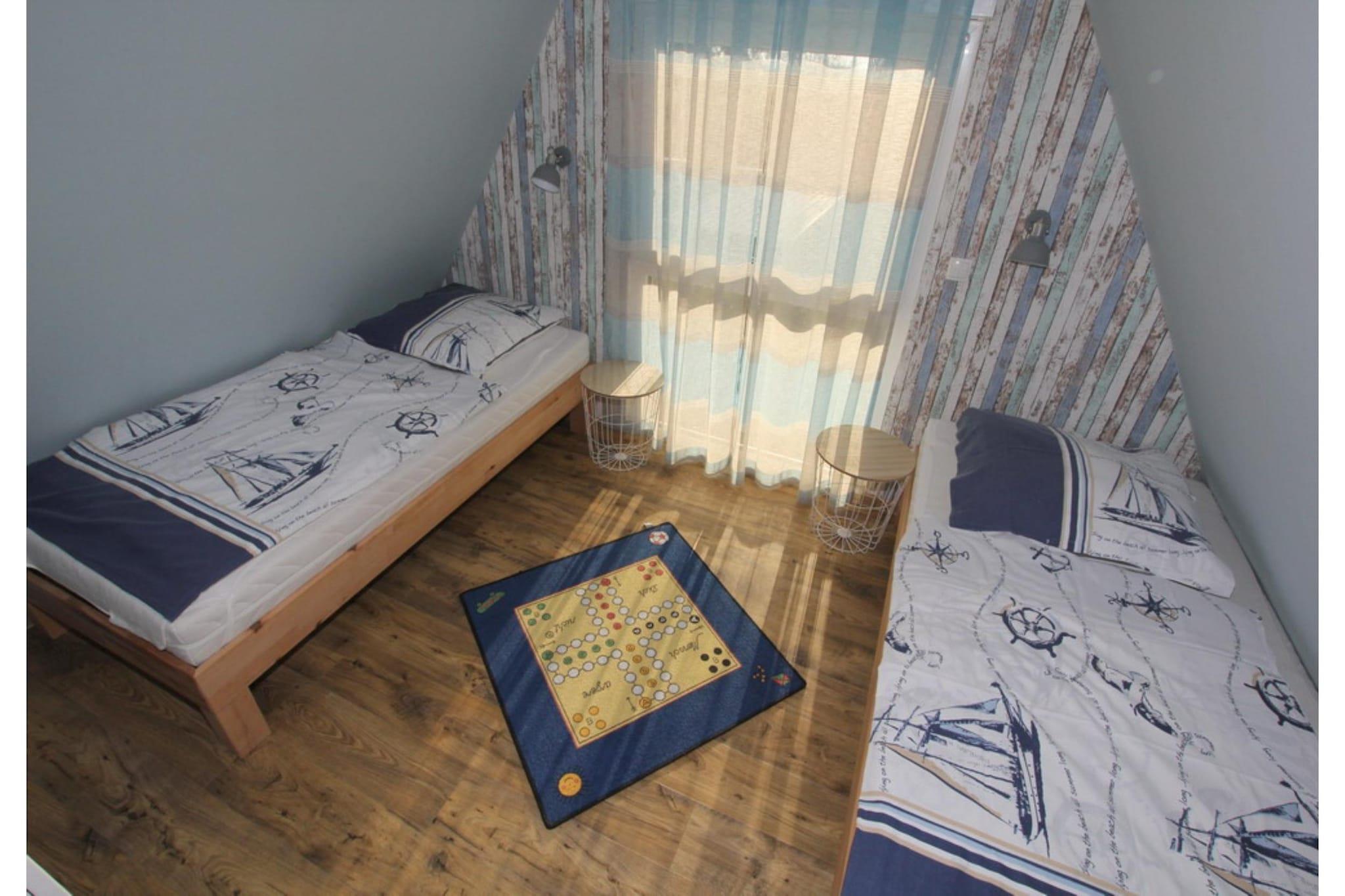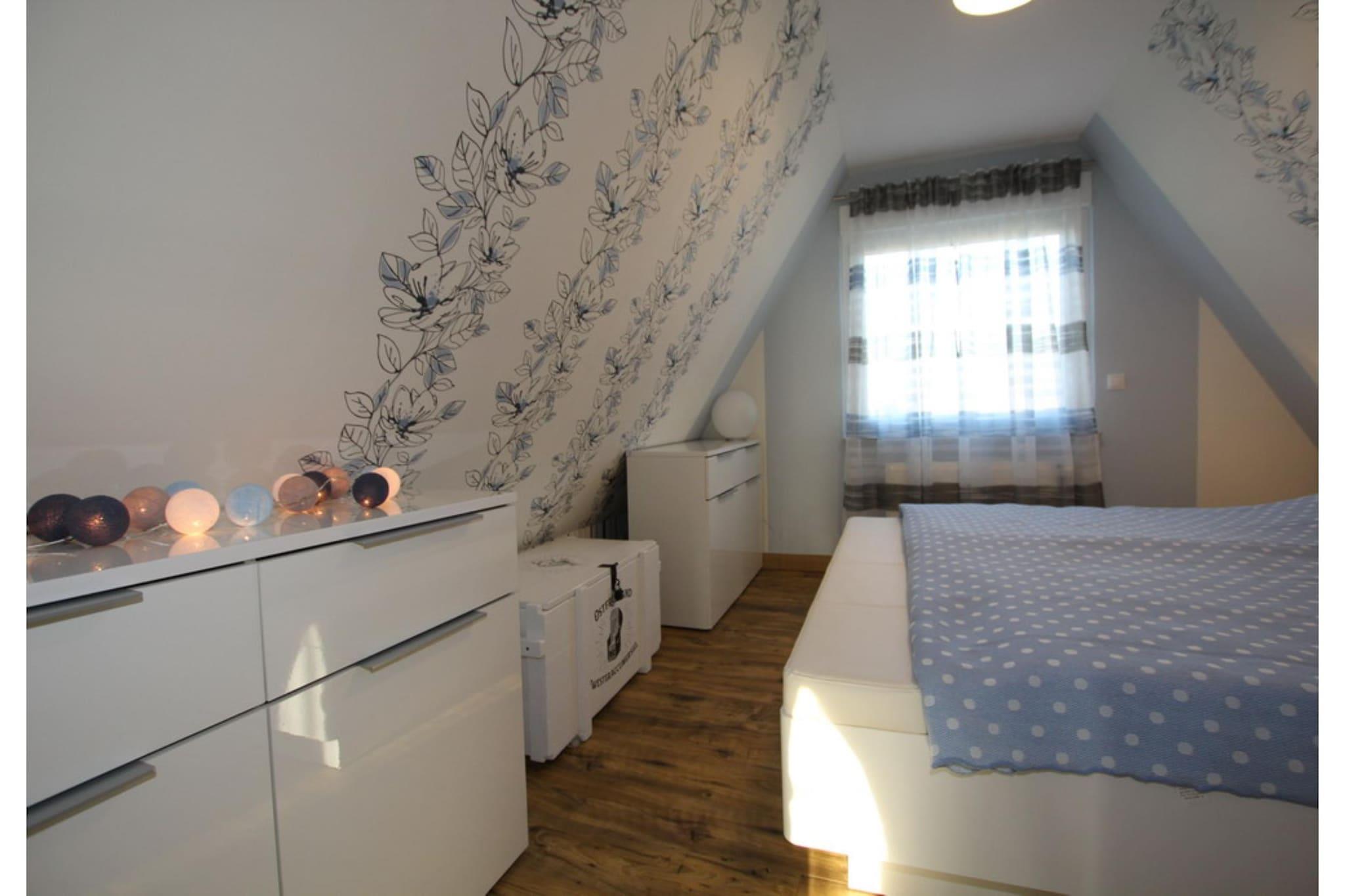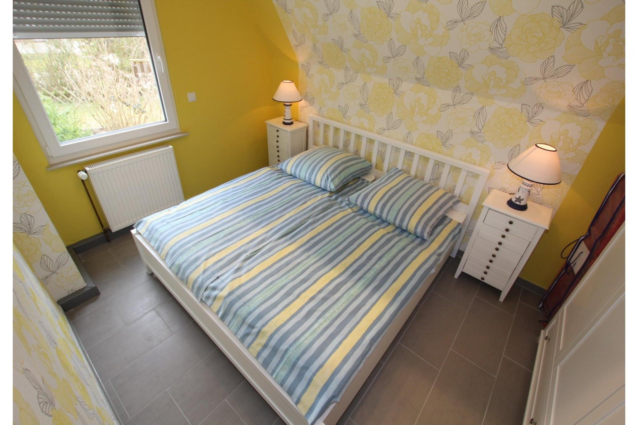 Enjoy relaxing days in this quiet bungalow located at the end of a cul-de-sac, just steps from the dike and close to the beach. The garden with its terrace invites you to sunbathe and unwind – perfect for families with children. All the furniture, flooring, and the modern shower room have been completely renovated. The house offers a comfortable living room with a seating area, dining area, and access to the terrace. The master bedroom has a double bed, and the children's room is equipped with a practical pull-out bed for two people. The separate kitchen is functionally furnished, and the bright bathroom has a shower and toilet. Amenities: Satellite TV (81cm), DVD player, CD stereo system, ceramic hob with oven, microwave, refrigerator***, washing machine, dryer, toaster, kettle, garden furniture, barbecue, handcart, one women's and one men's bicycle. Garage, bicycle storage, and parking space are available. Non-smoking house, no pets allowed.